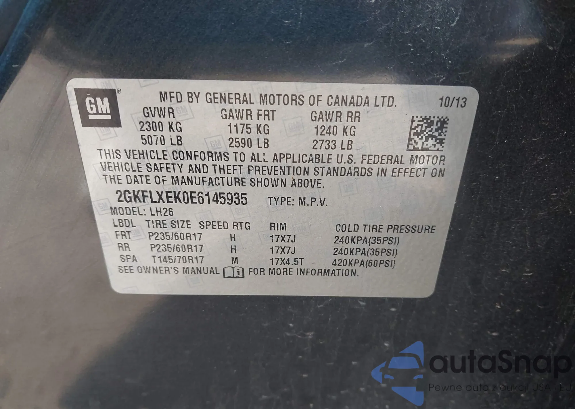 • VIN 2GKFLXEK0E6145935