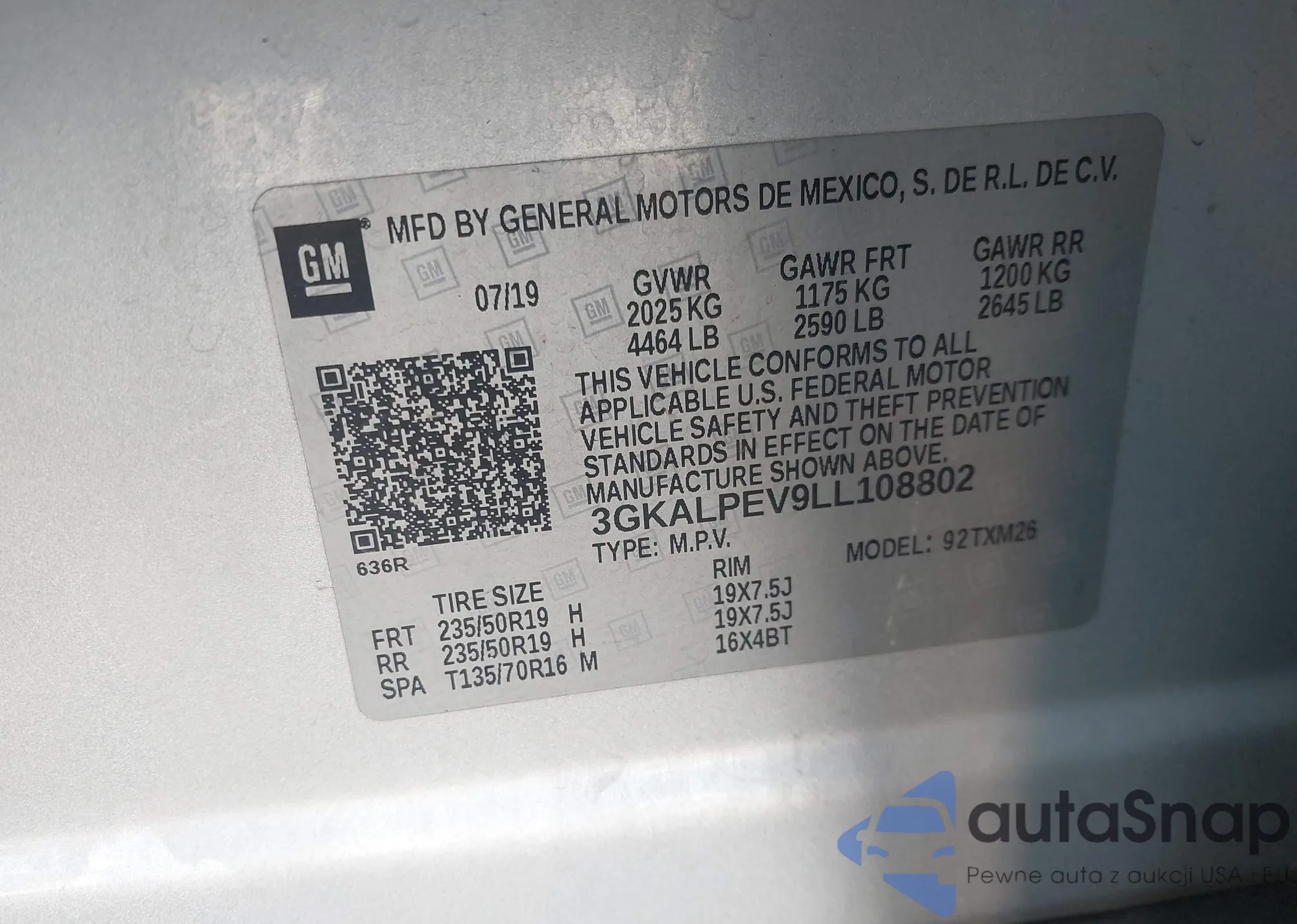 • VIN 3GKALPEV9LL108802