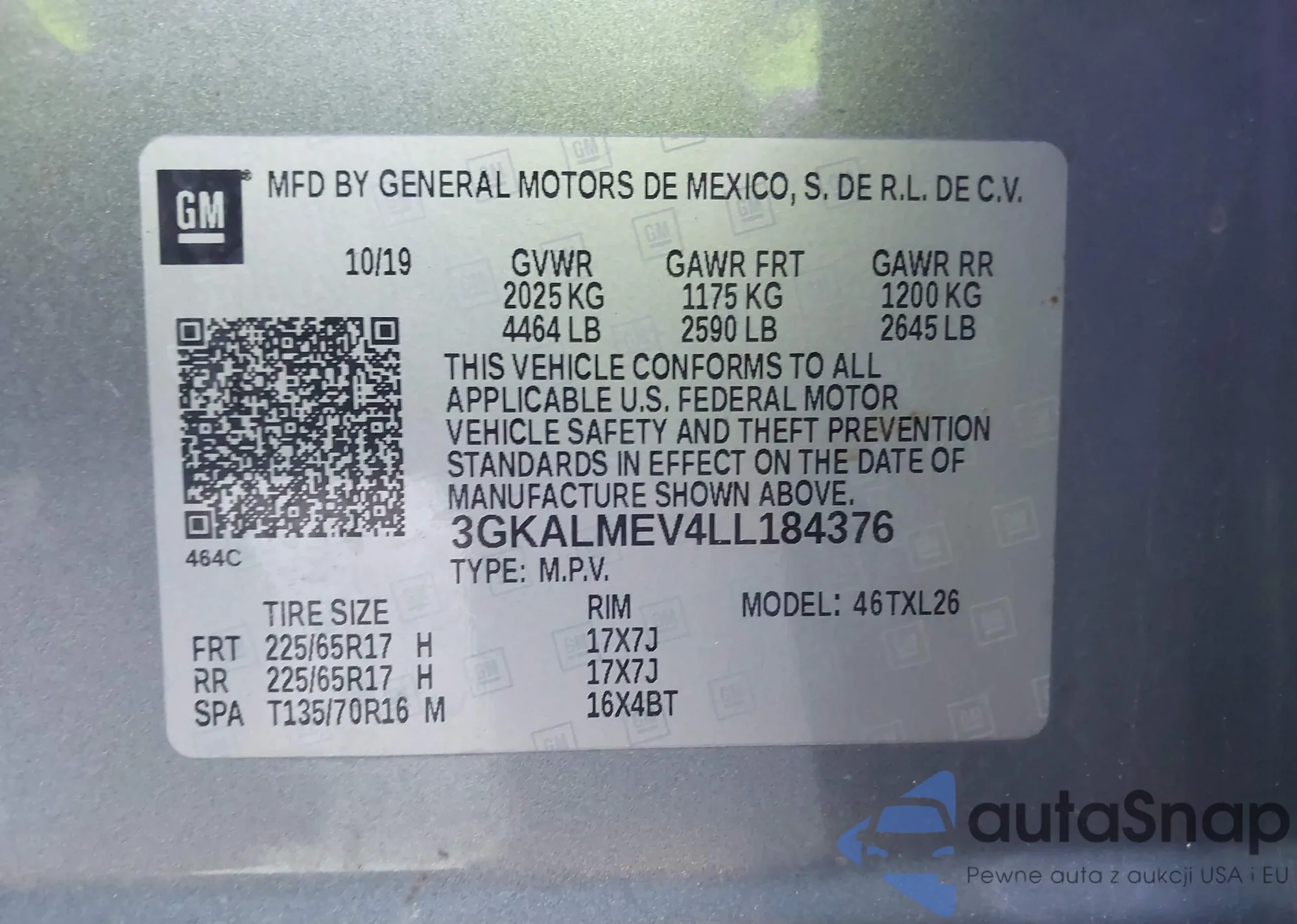 LOT: 44186561 VIN: 3GKALMEVXKL363634