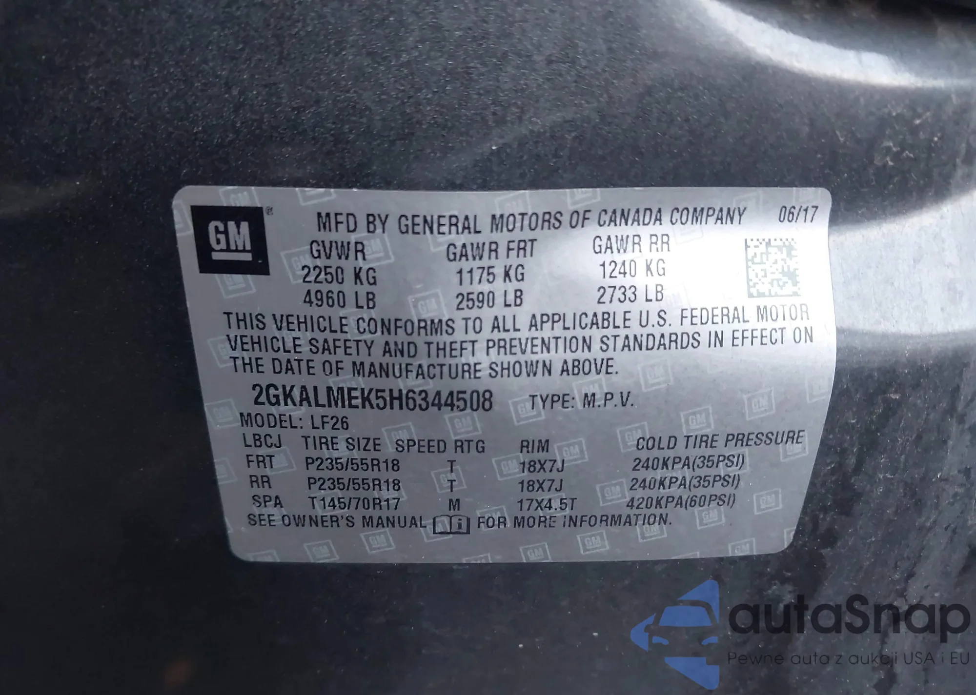 • VIN 2GKALMEK5H6344508