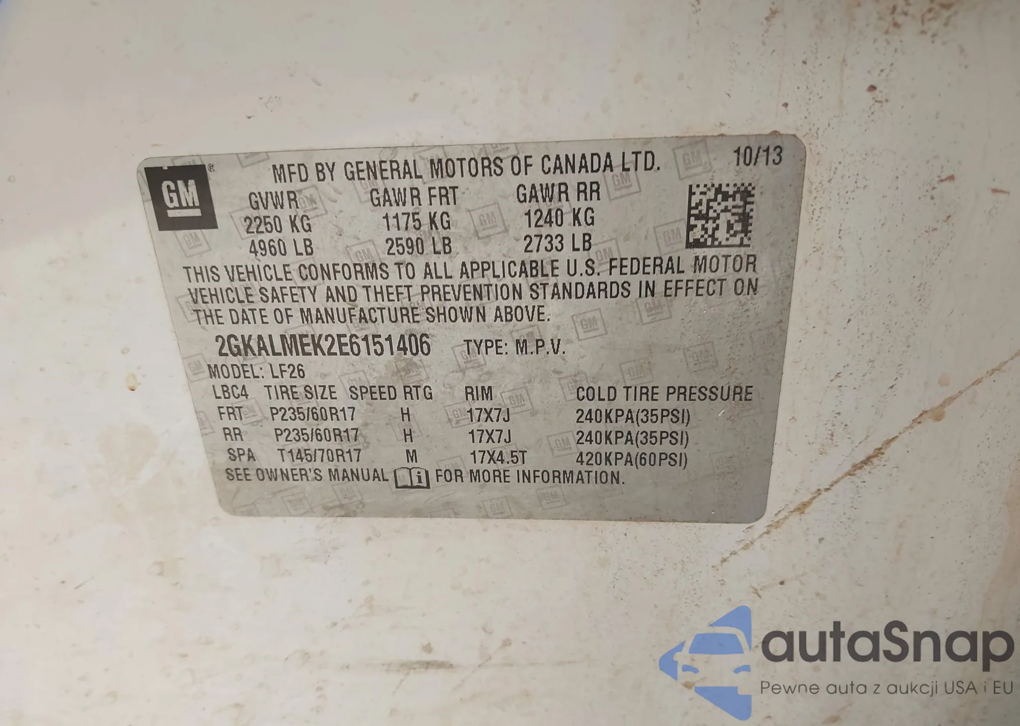 • VIN 2GKALMEK2E6151406