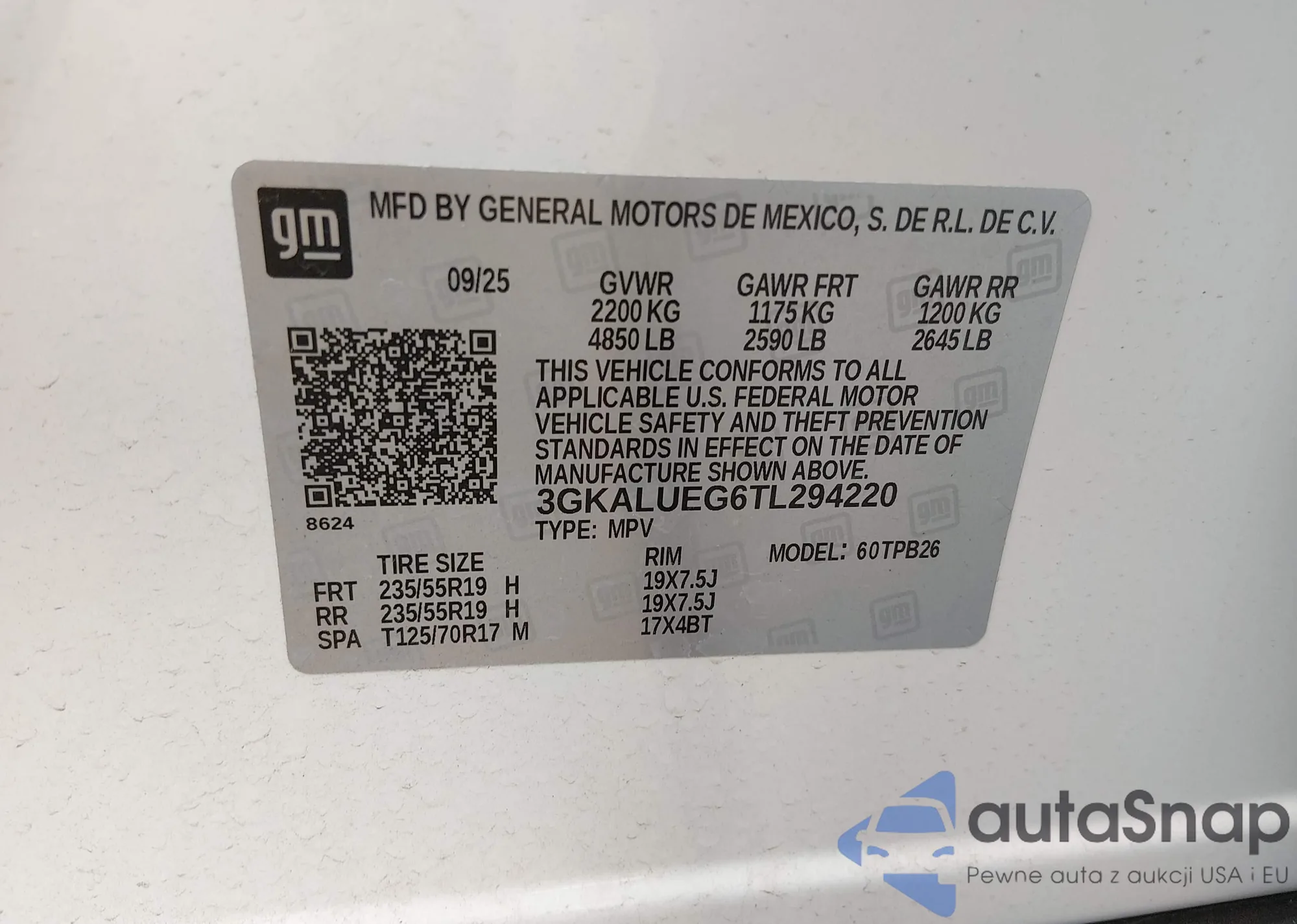 LOT: 44373638 VIN: 3GKALUEG6TL294220