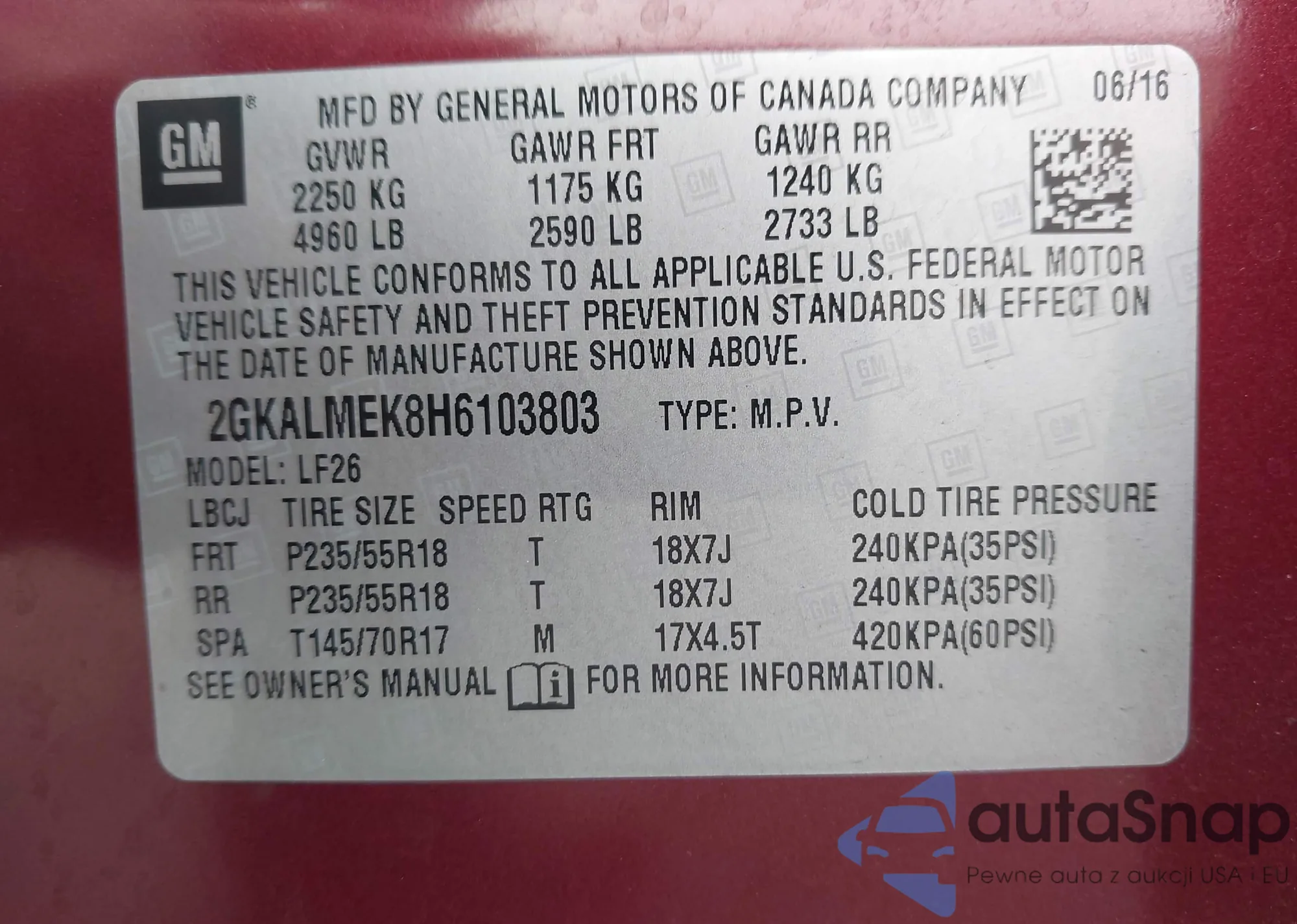 • VIN 2GKALMEK8H6103803
