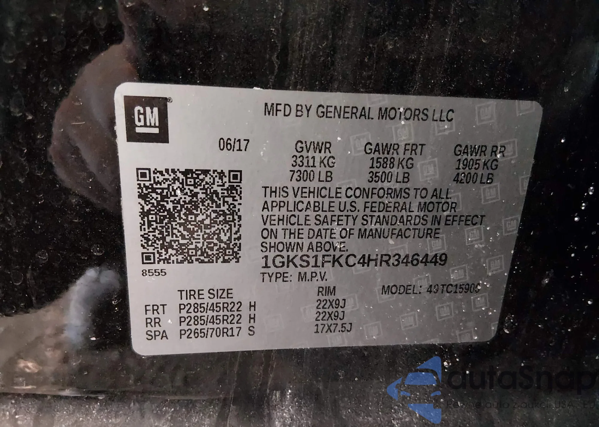 LOT: 44300456 VIN: 1GKS1FKC4HR346449
