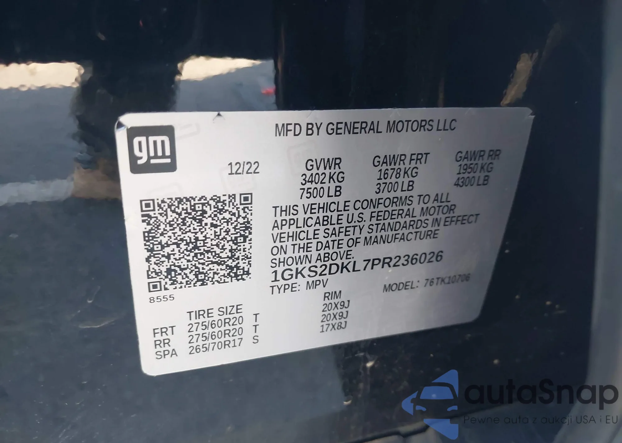 LOT: 44136624 VIN: 1GKS2DKL7PR236026
