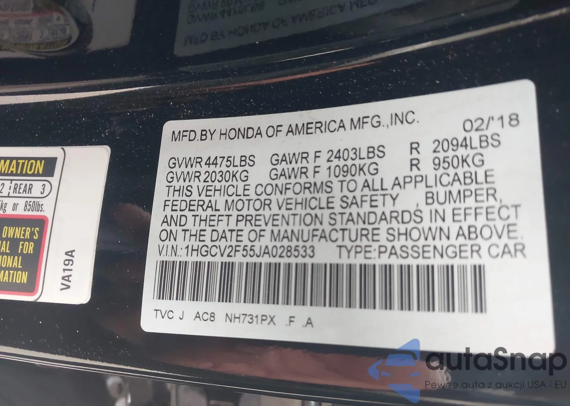 • VIN 1HGCV2F55JA028533