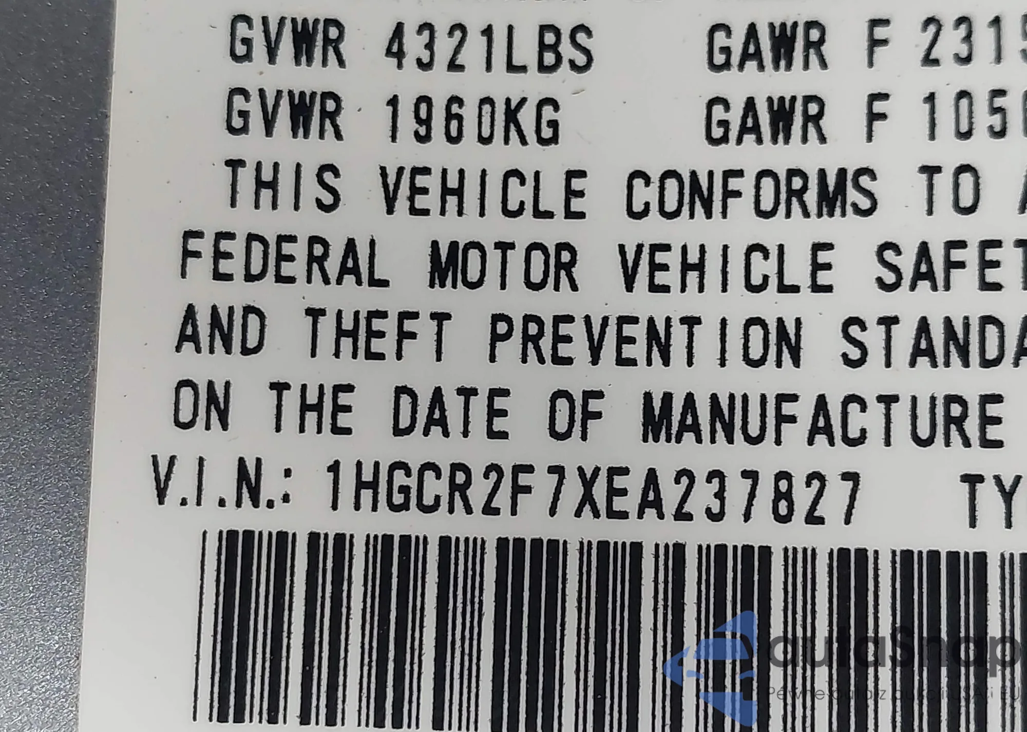 • VIN 1HGCR2F7XEA237827