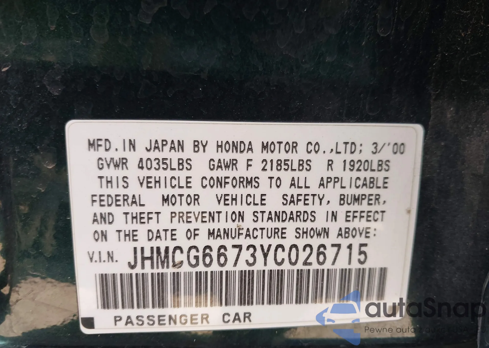 • VIN JHMCG6673YC026715