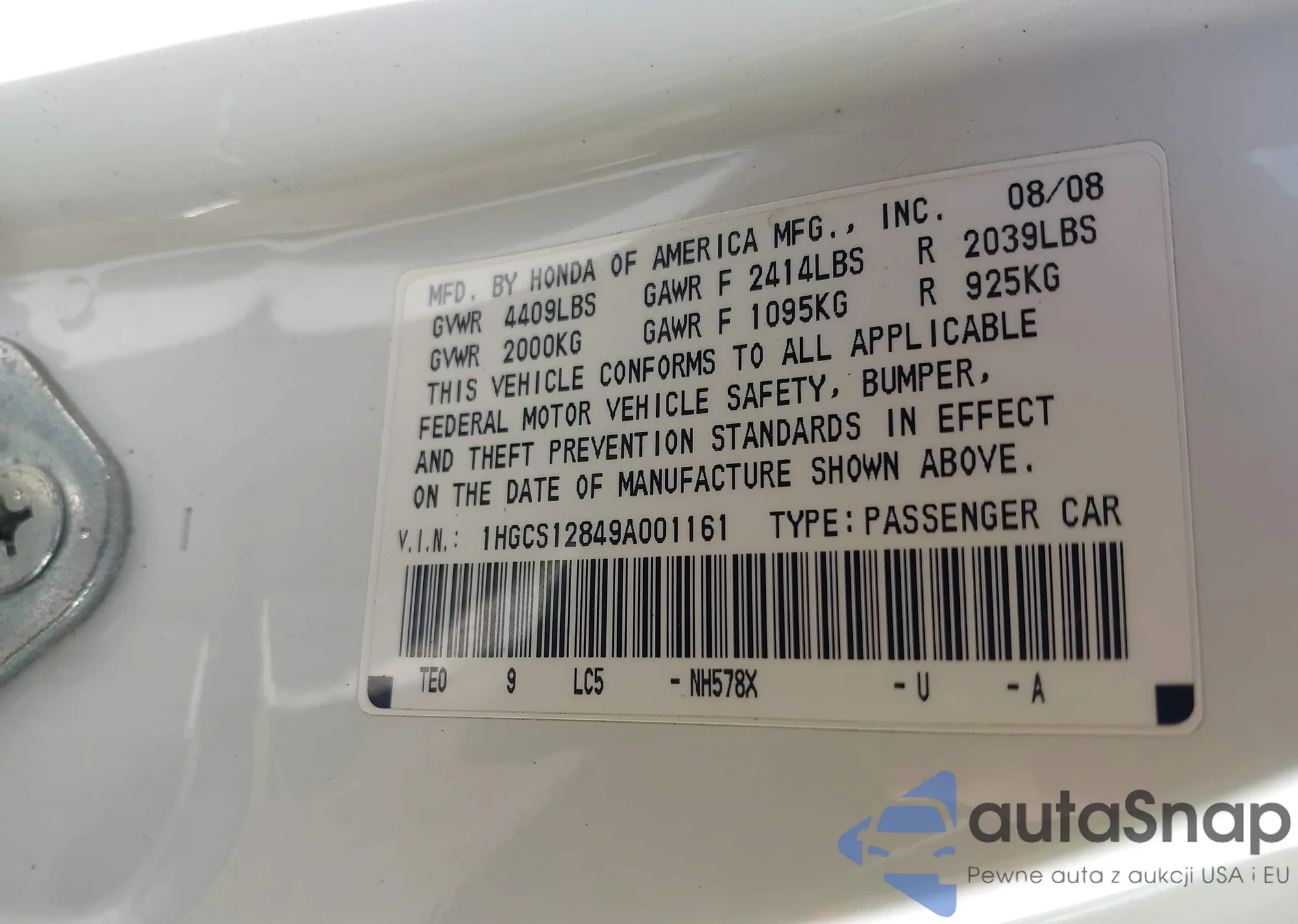 Kup Honda Accord VIII z USA