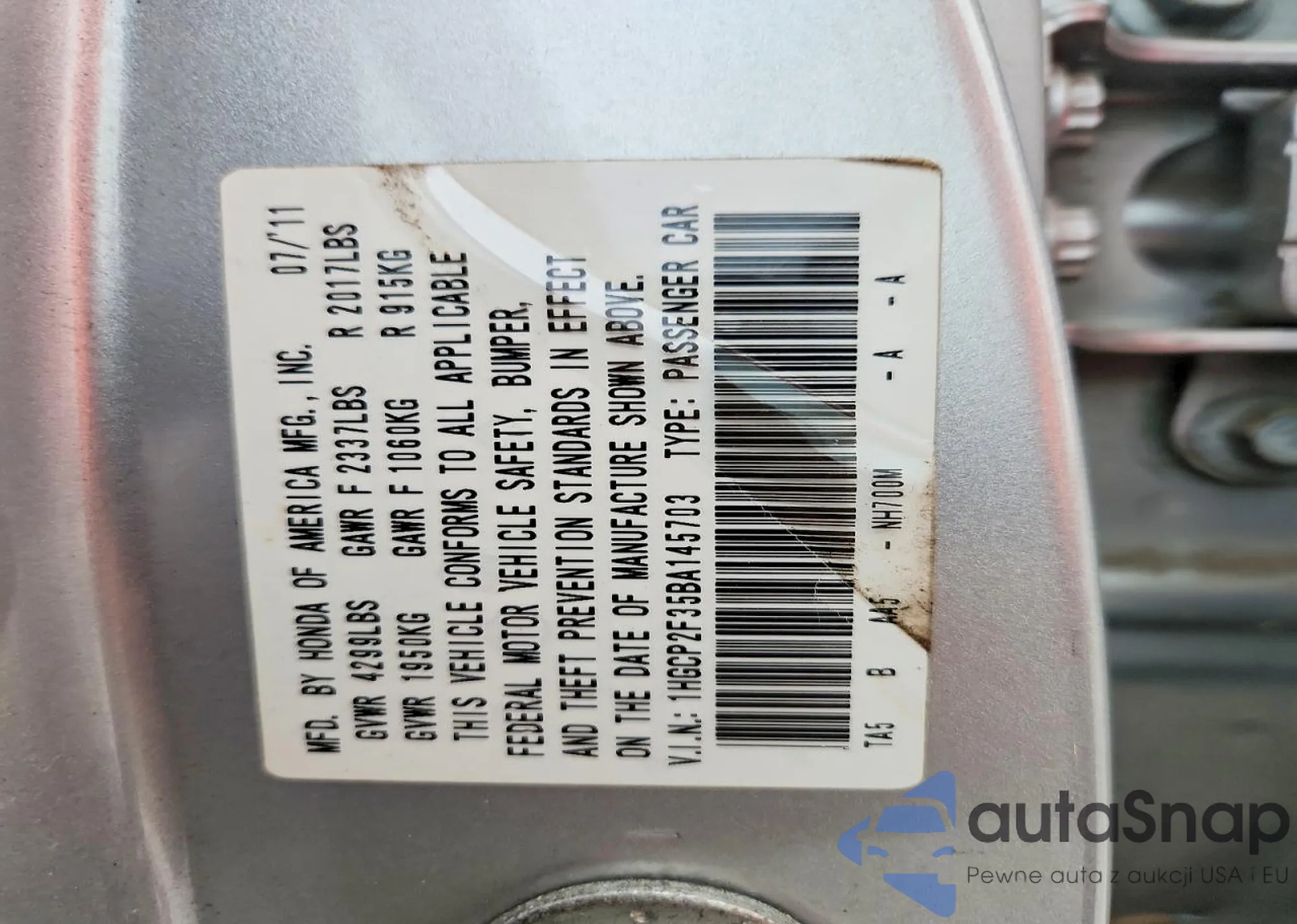 LOT: 41951096 VIN: 1HGCP2F35BA145703