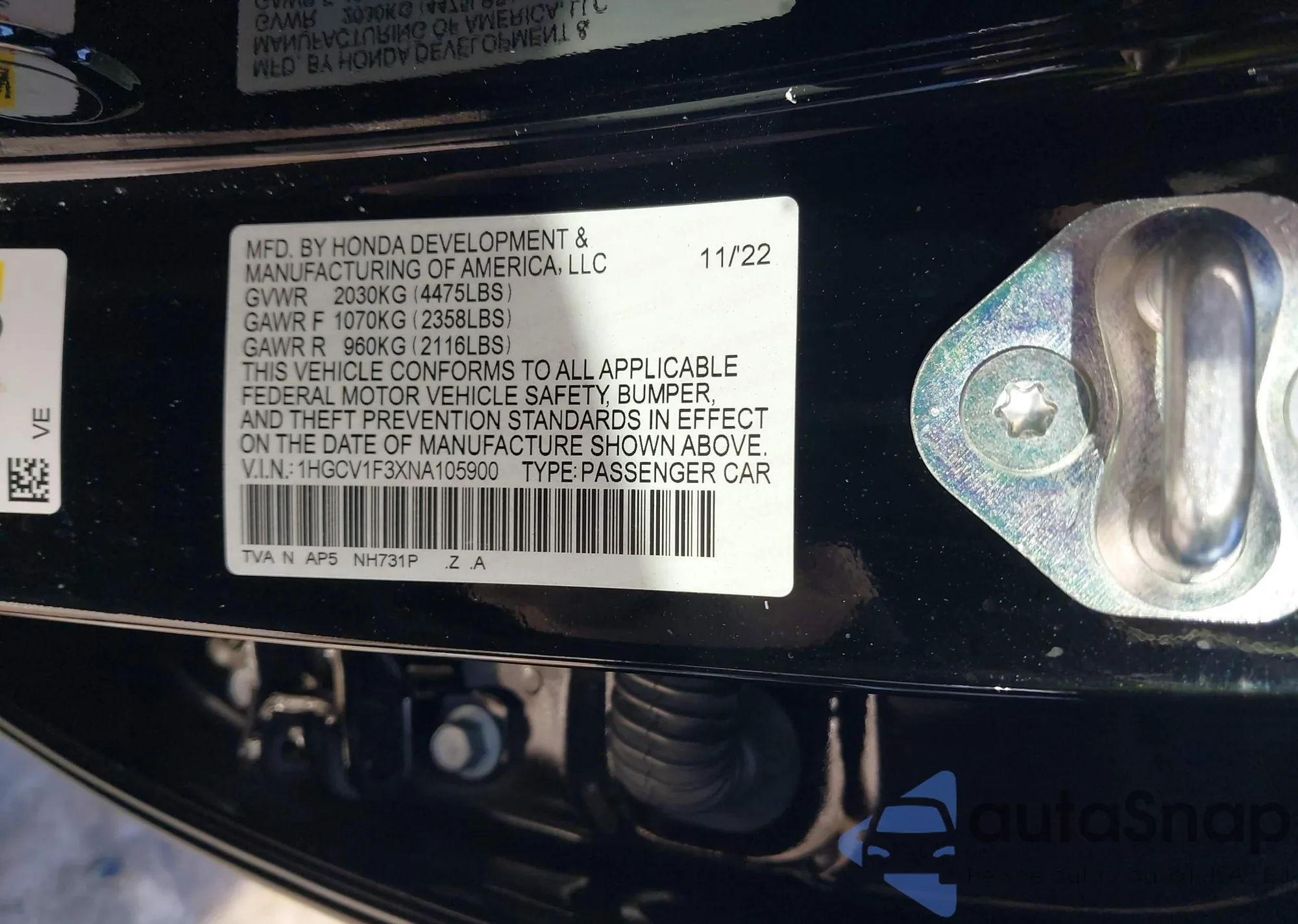 • VIN 1HGCV1F3XNA105900