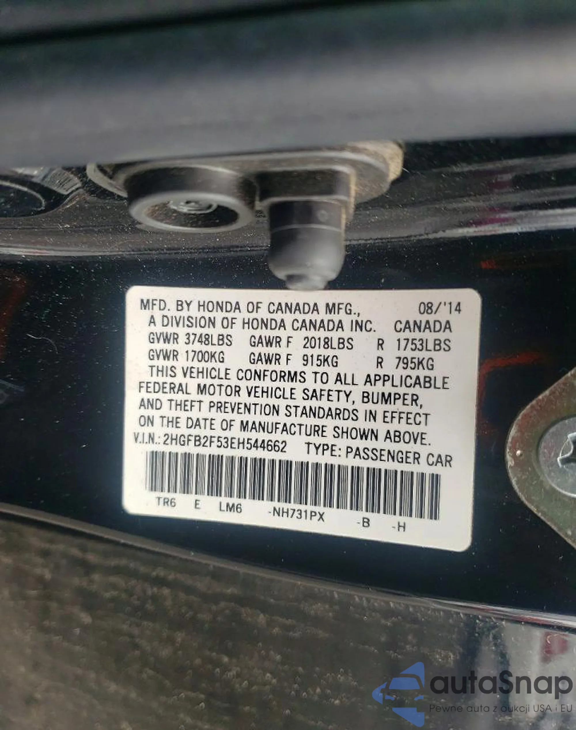 • VIN 2HGFB2F53EH544662