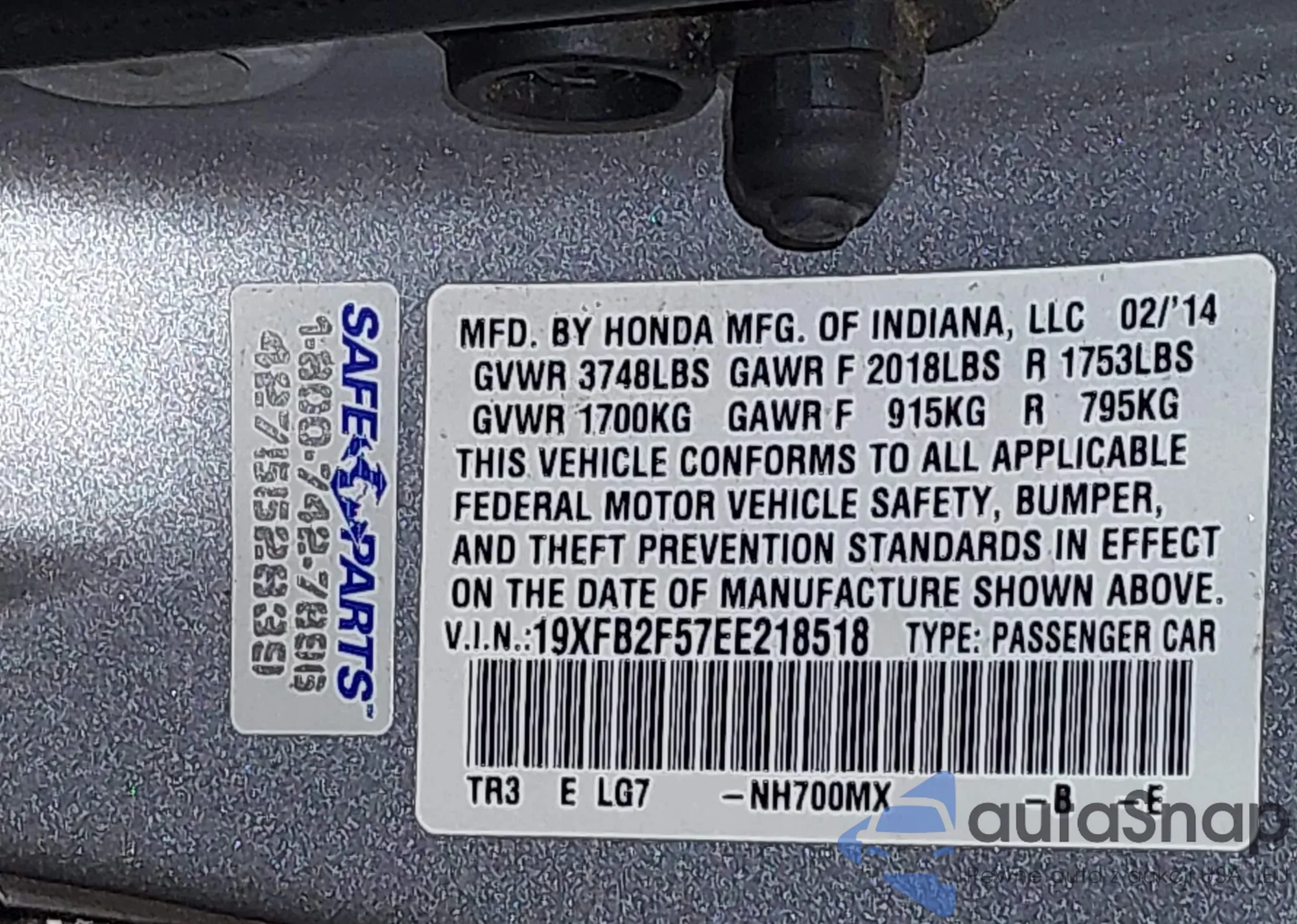 • VIN 19XFB2F57EE218518