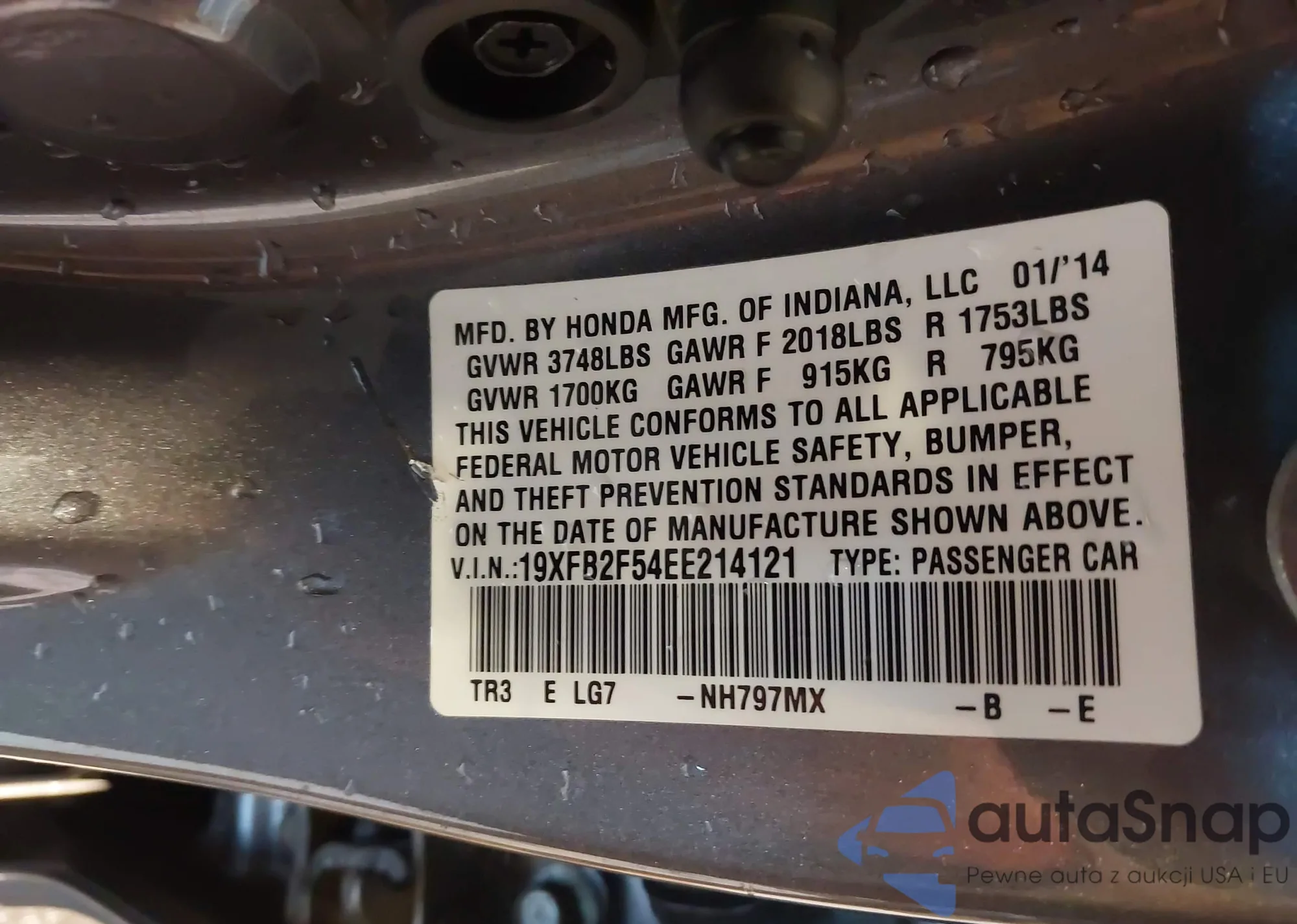 • VIN 19XFB2F54EE214121