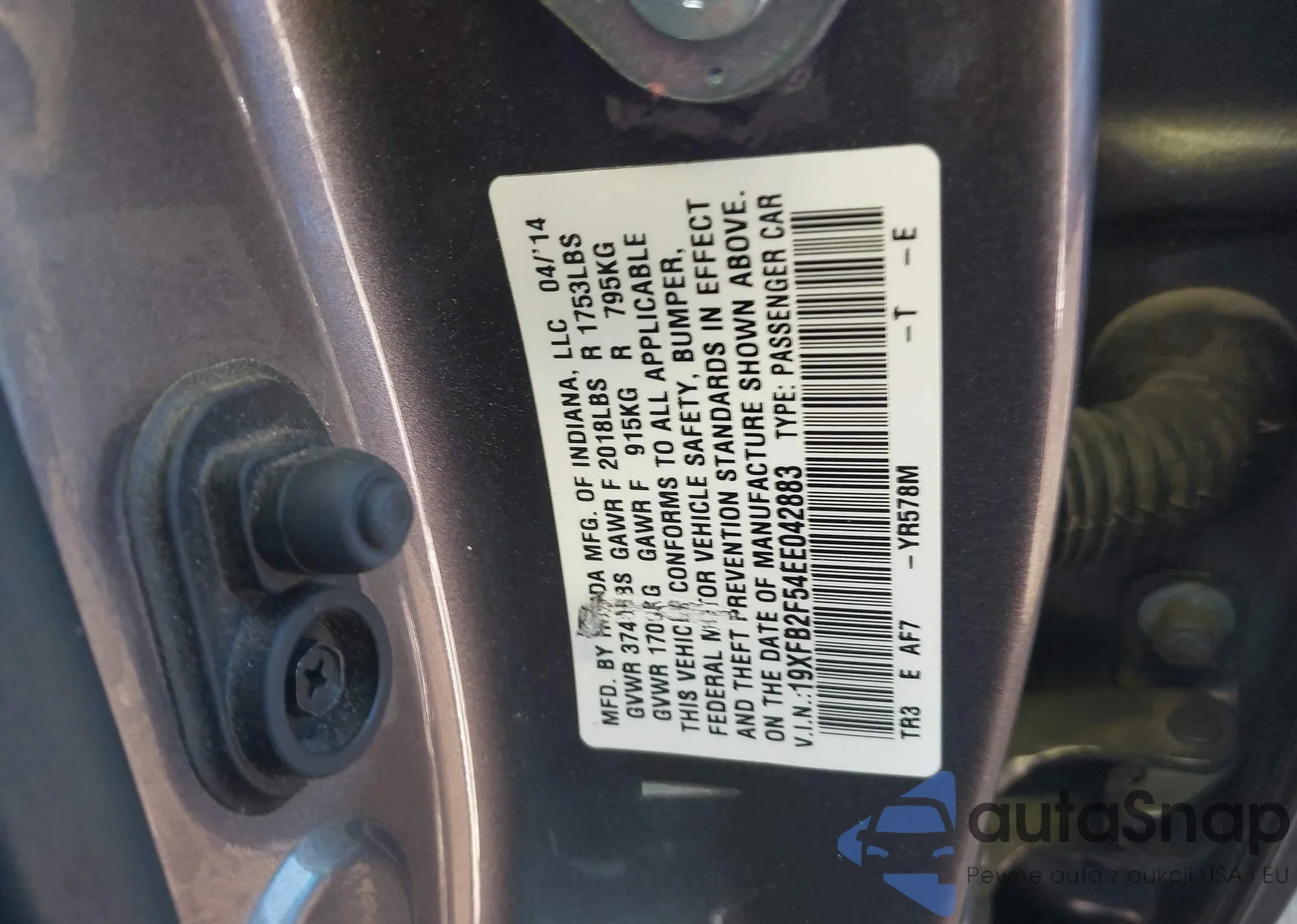 LOT: 43793000 VIN: 19XFB2F54EE042883