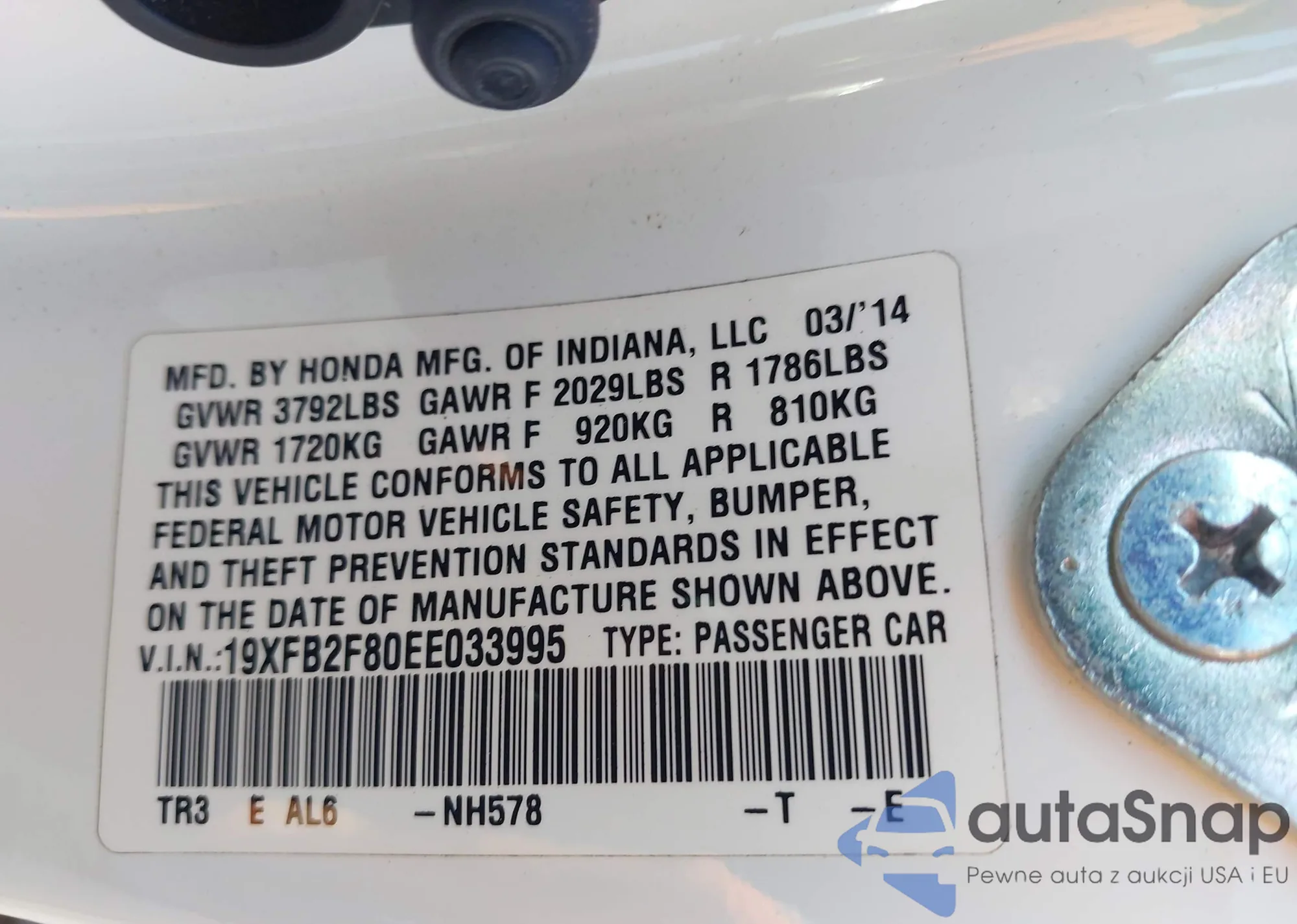 LOT: 42986763 VIN: 19XFB2F80EE033995