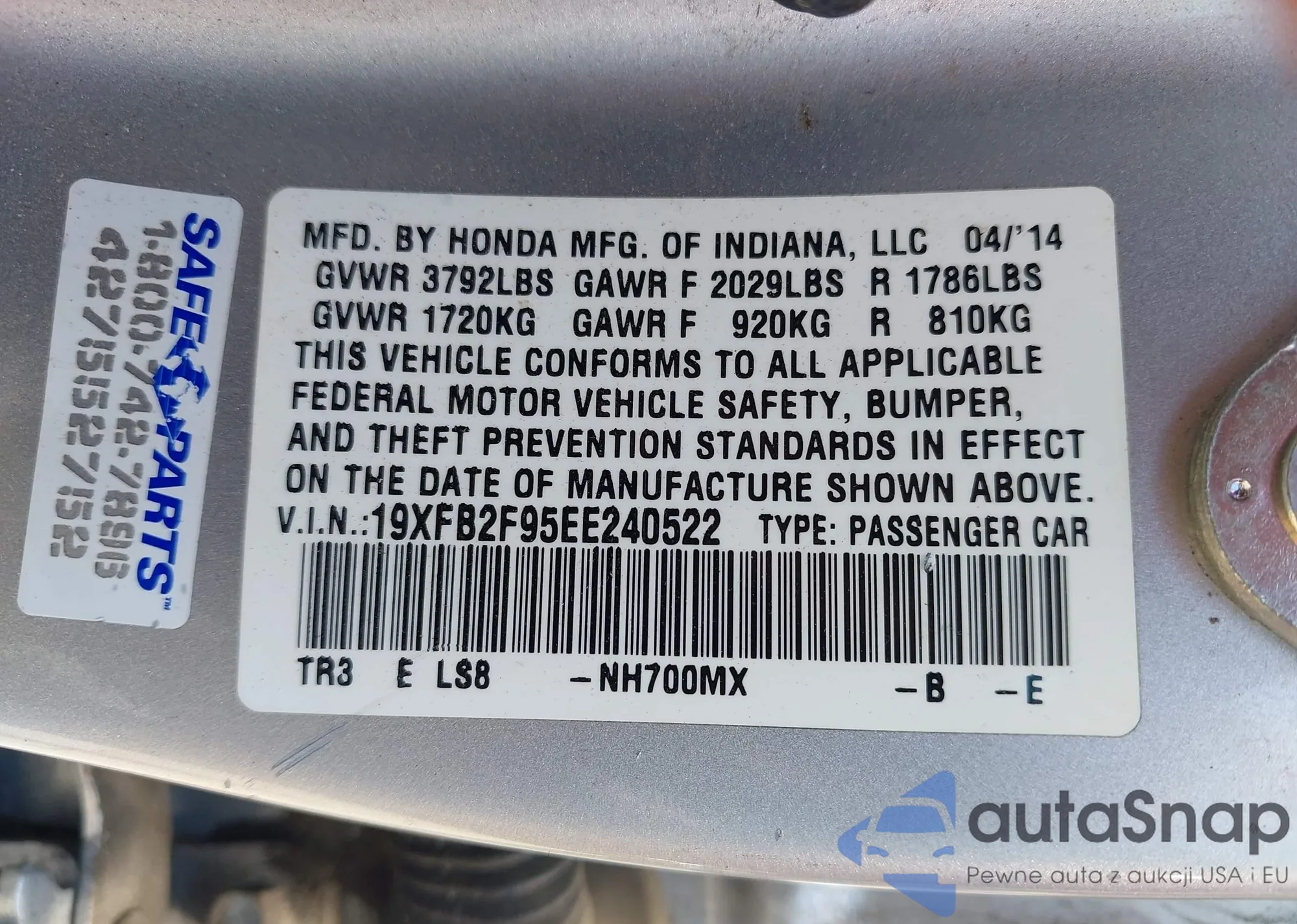 • VIN 19XFB2F95EE240522