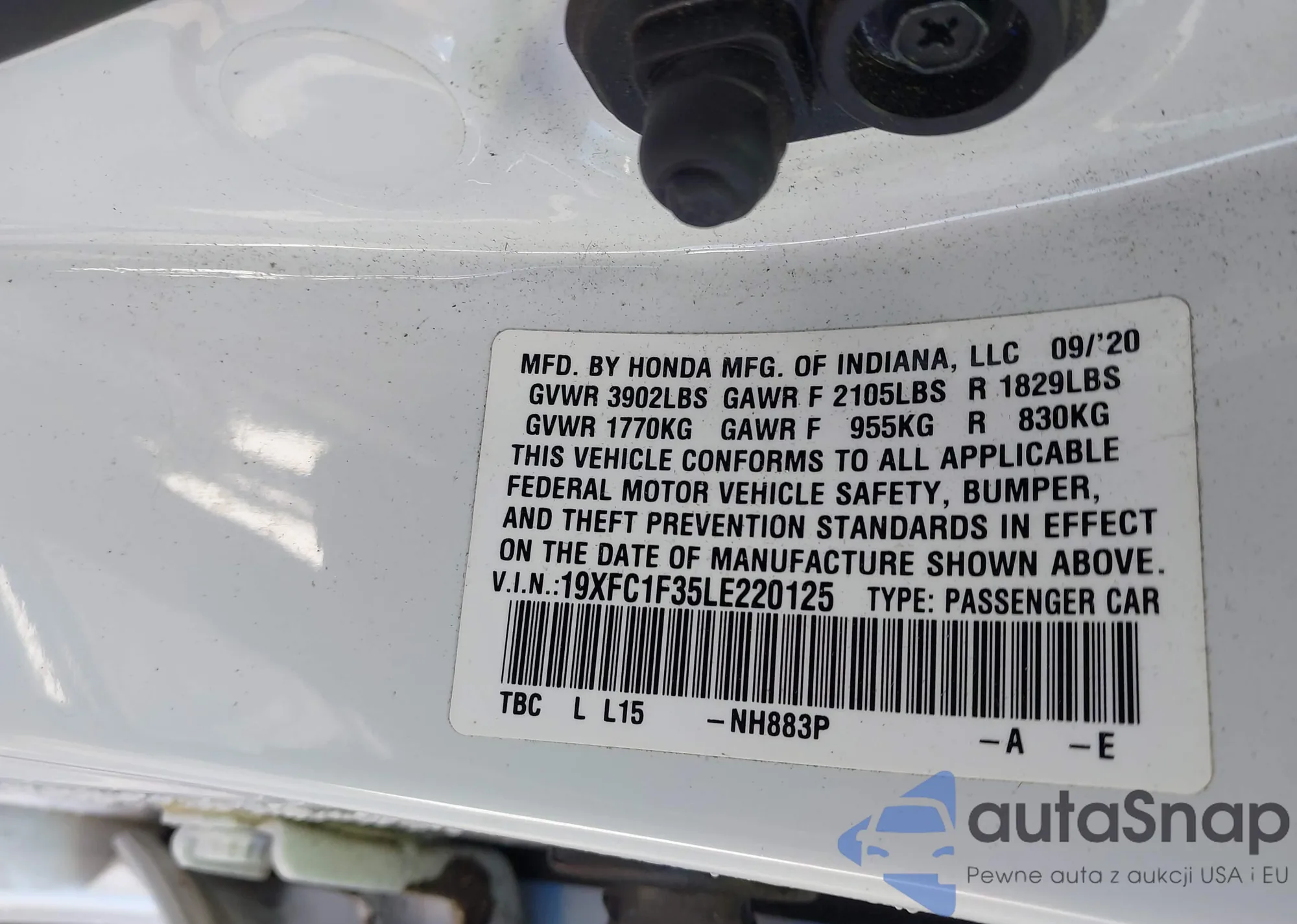 • VIN 19XFC1F35LE220125