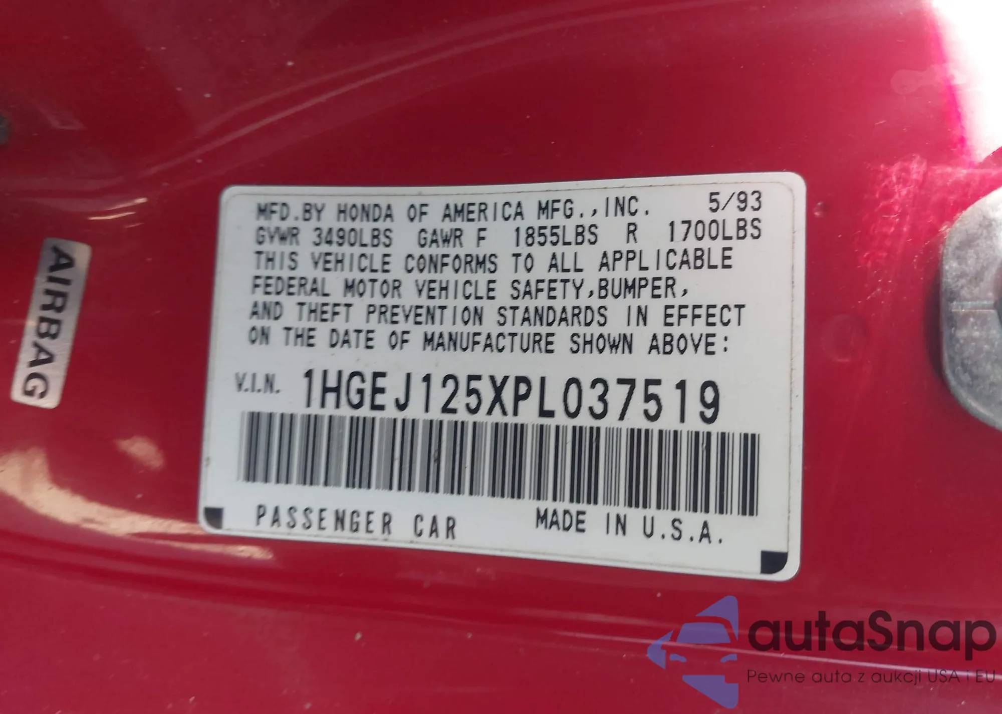 • VIN 1HGEJ125XPL037519