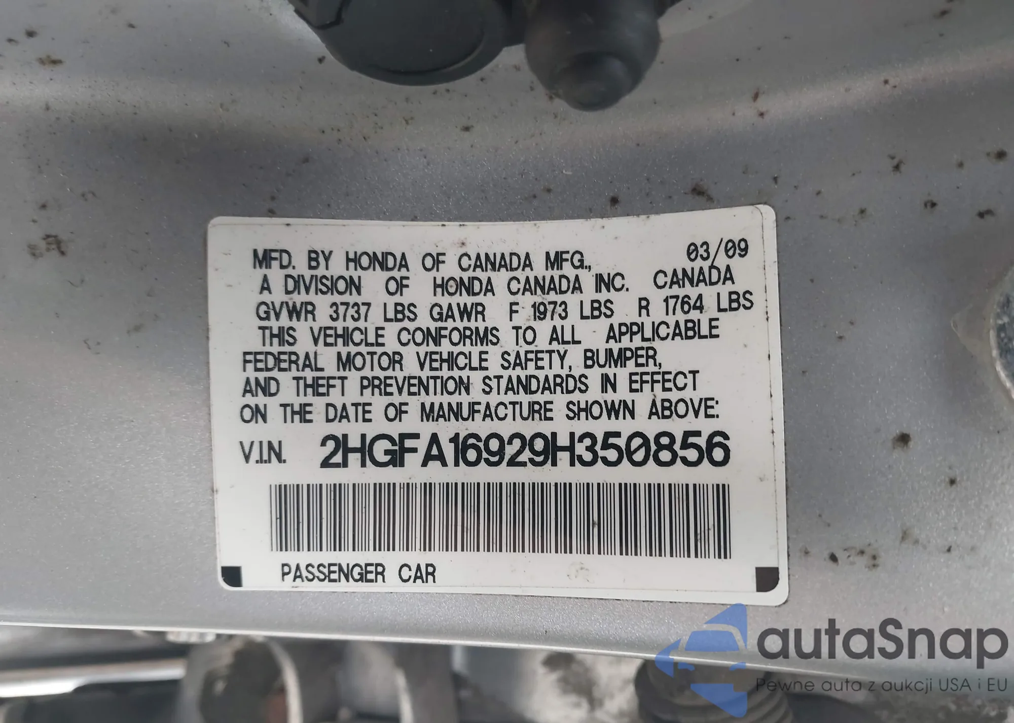 • VIN 2HGFA16929H350856