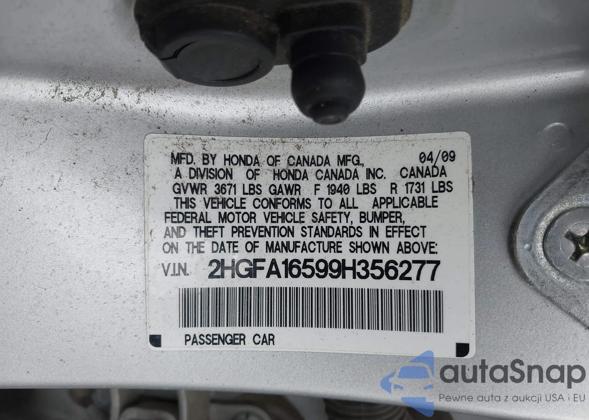 LOT: 44059534 VIN: 2HGFA16599H356277