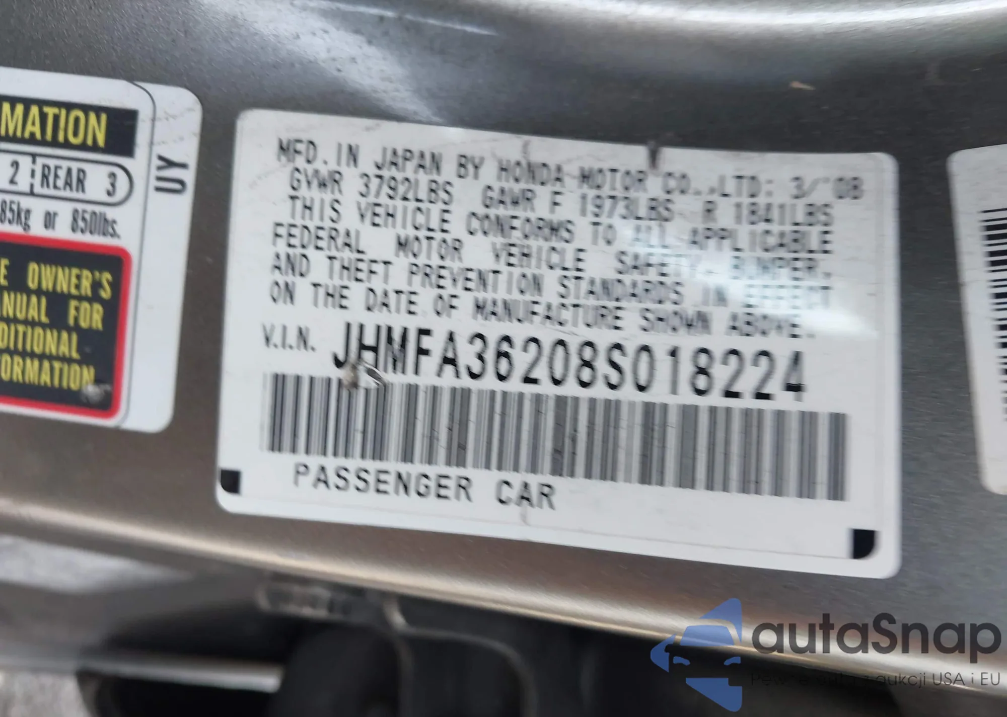• VIN JHMFA36208S018224