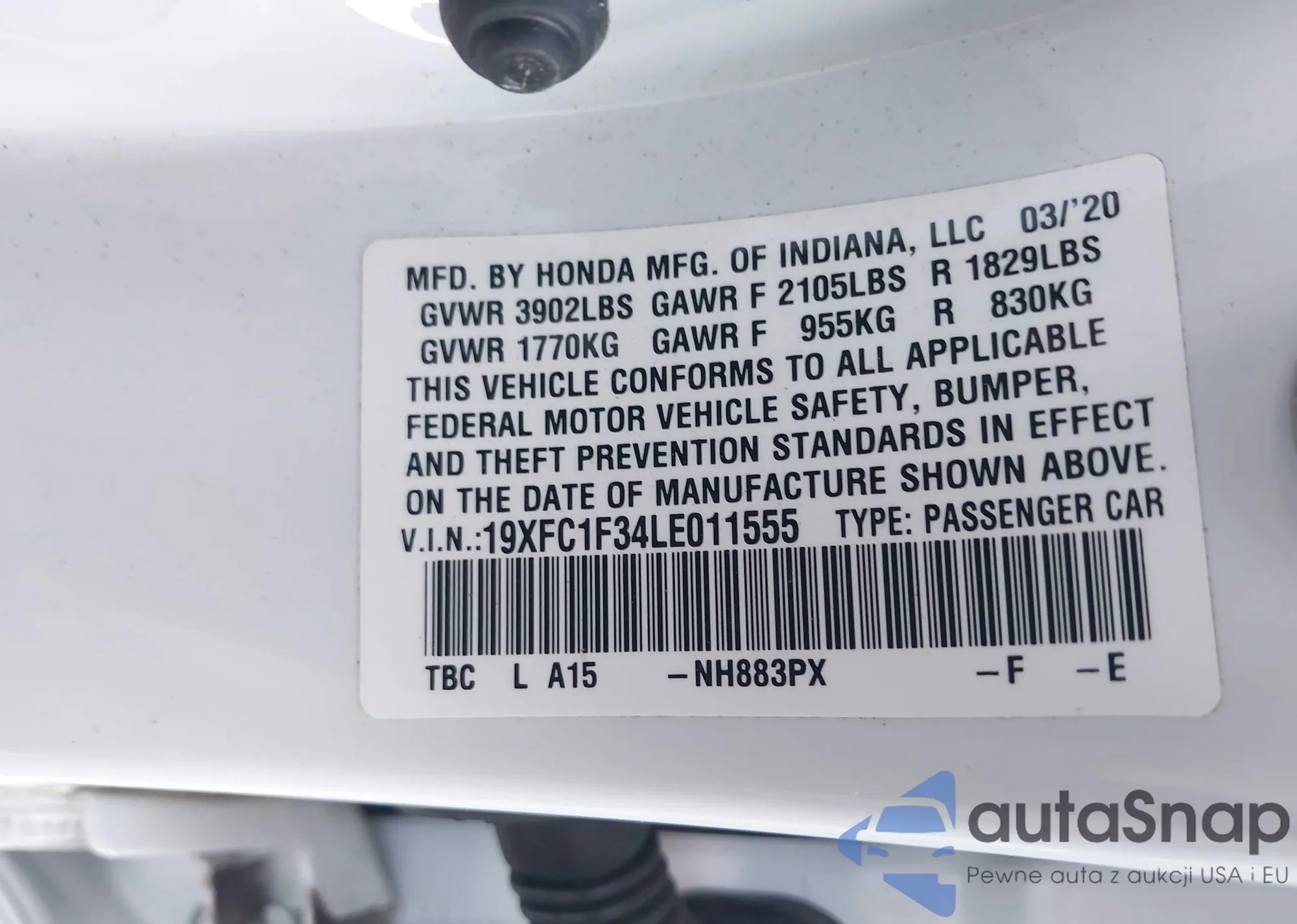 LOT: 43903722 VIN: 2HGFC2F89LH557839