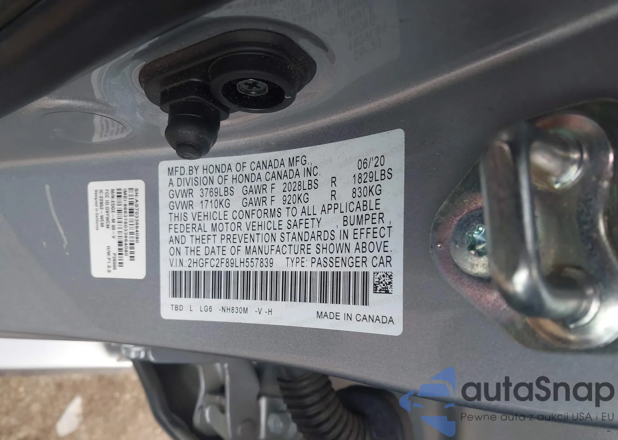 • VIN 2HGFC2F89LH557839