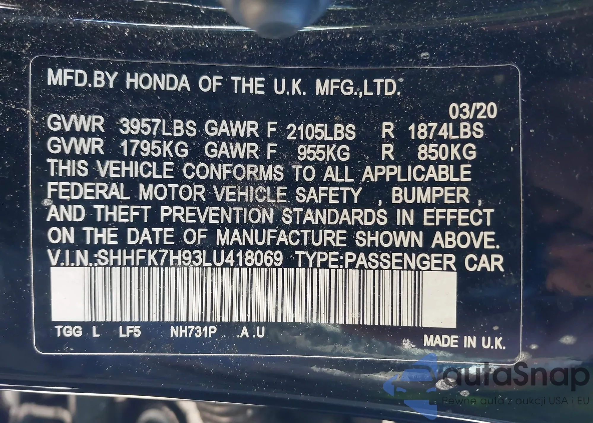 • VIN SHHFK7H93LU418069