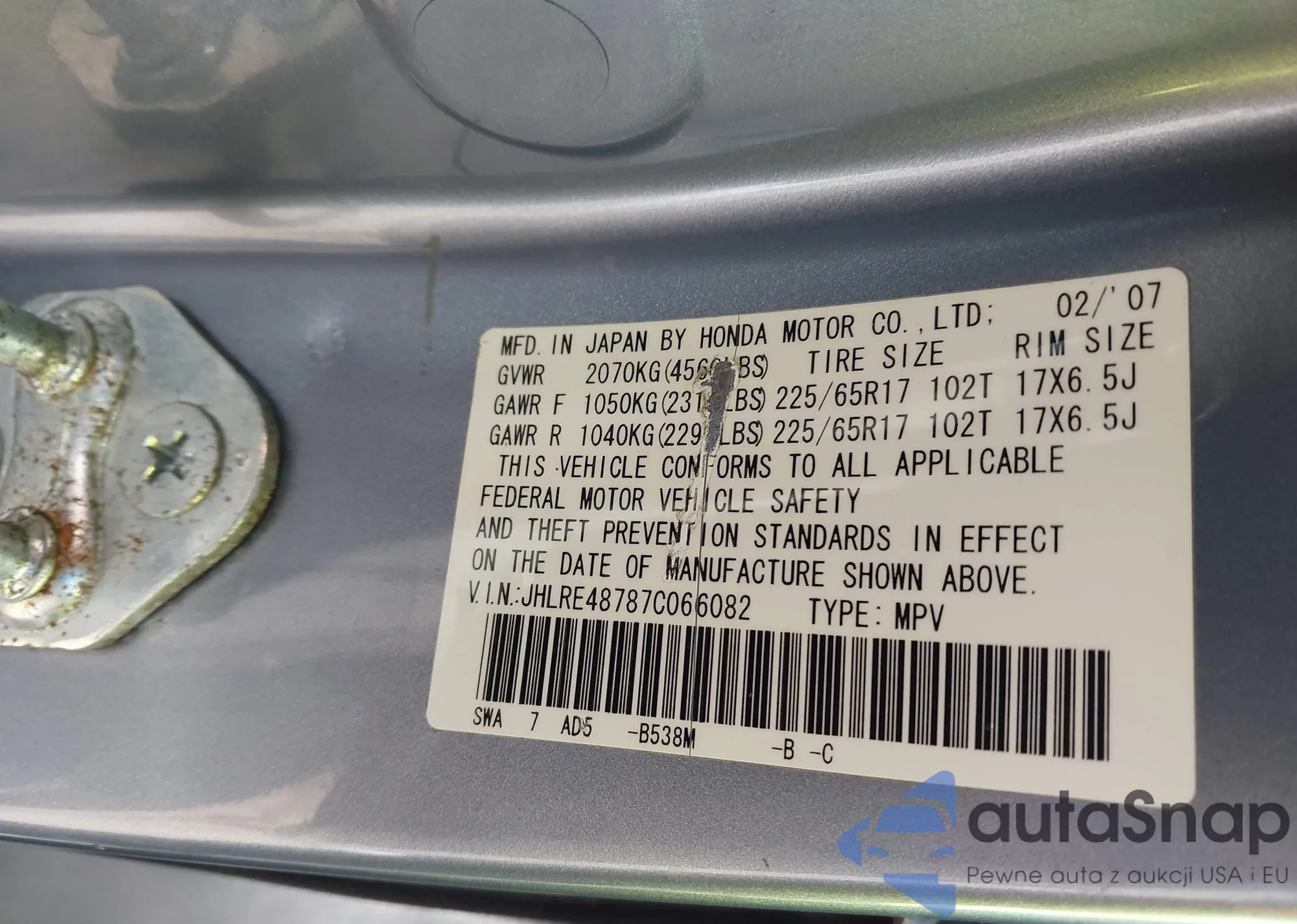 • VIN JHLRE48787C066082