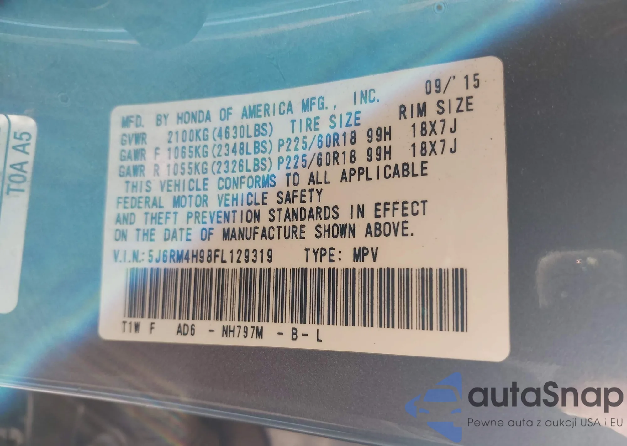• VIN 5J6RM4H98FL129319