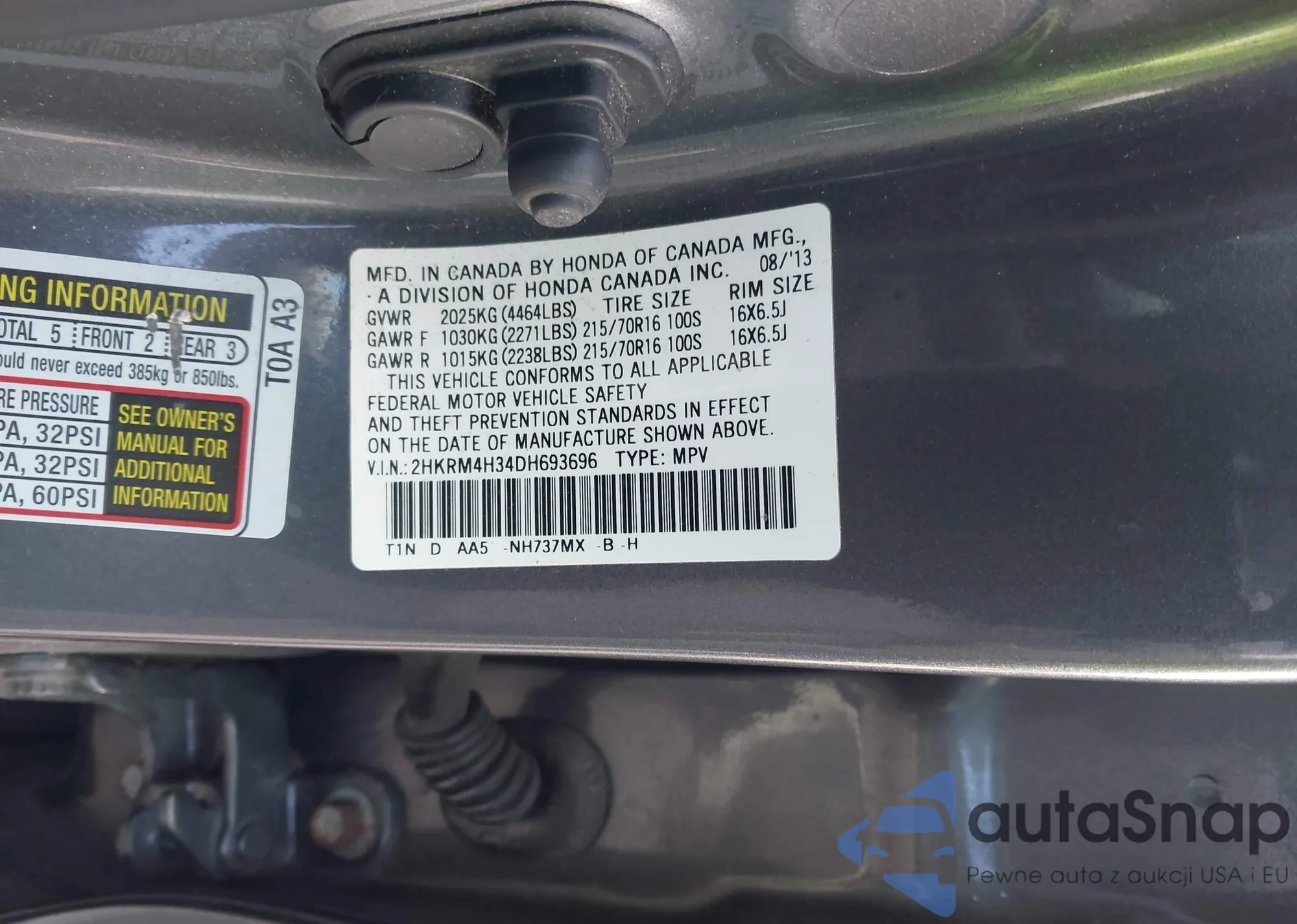 • VIN 2HKRM4H58DH690432