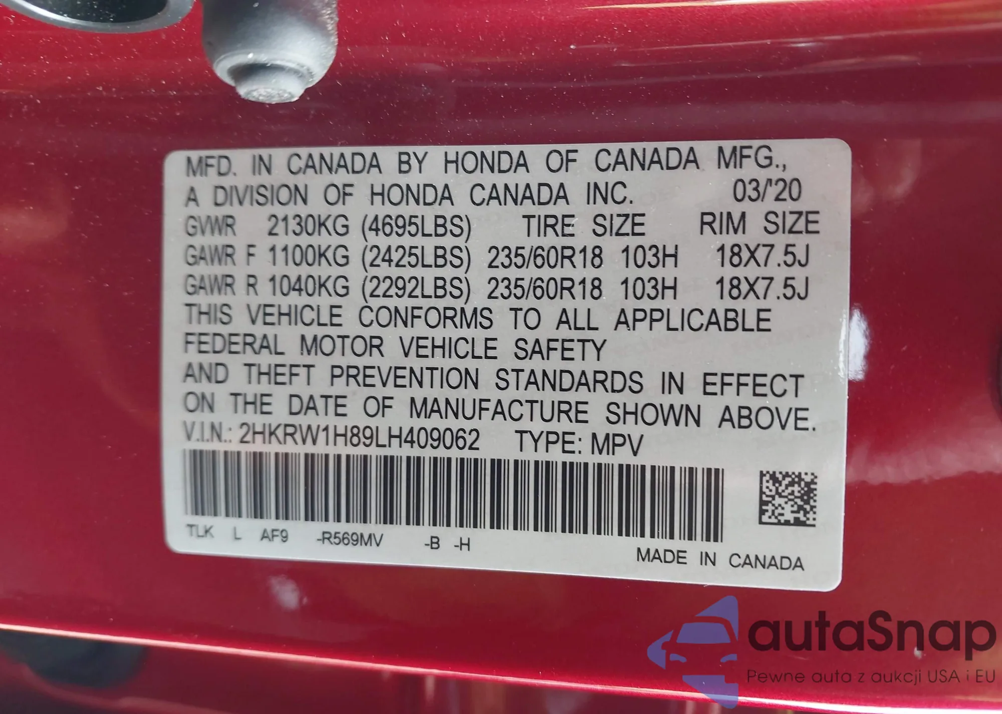 Kup Honda CR-V V z USA