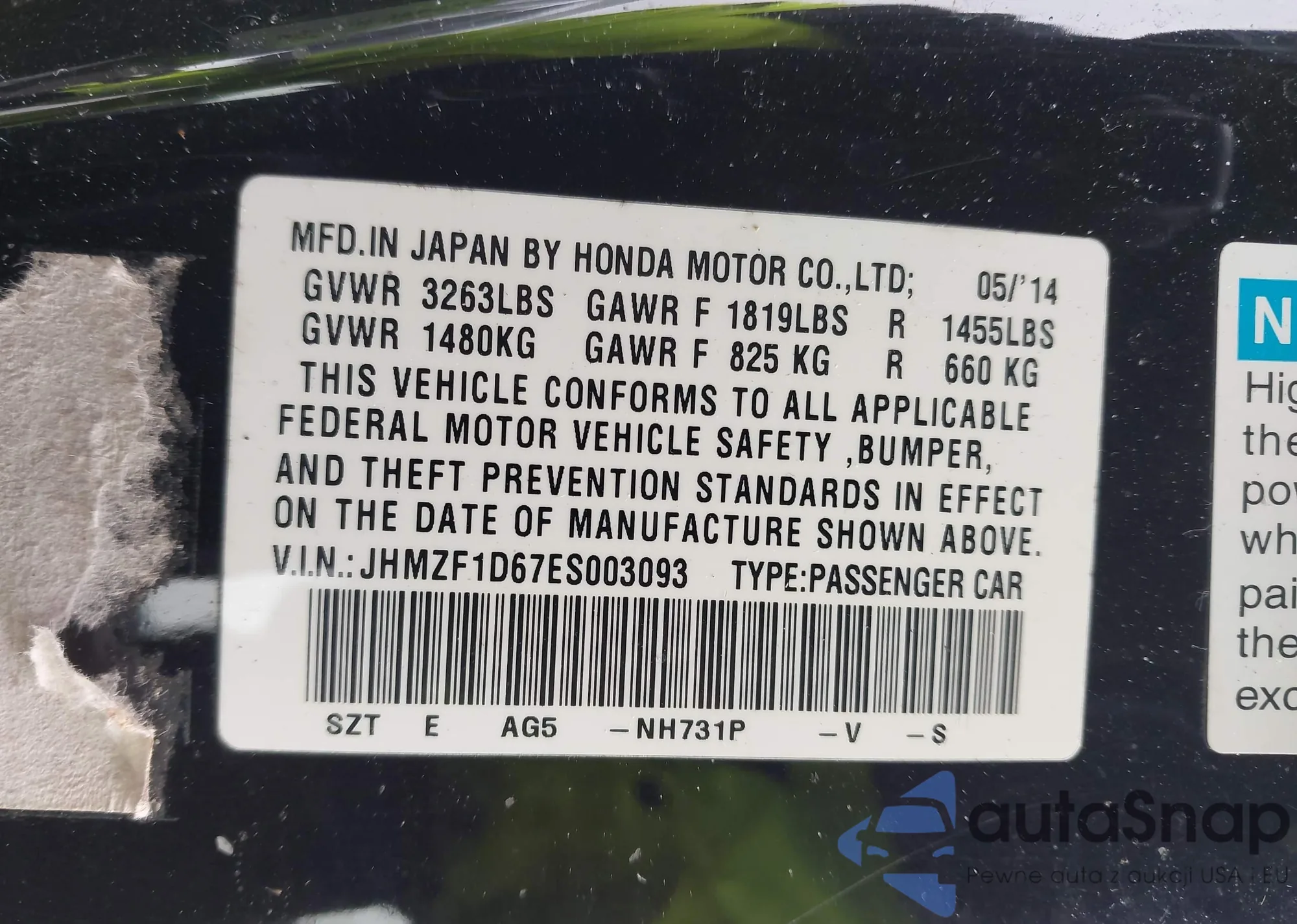 • VIN JHMZF1D67ES003093
