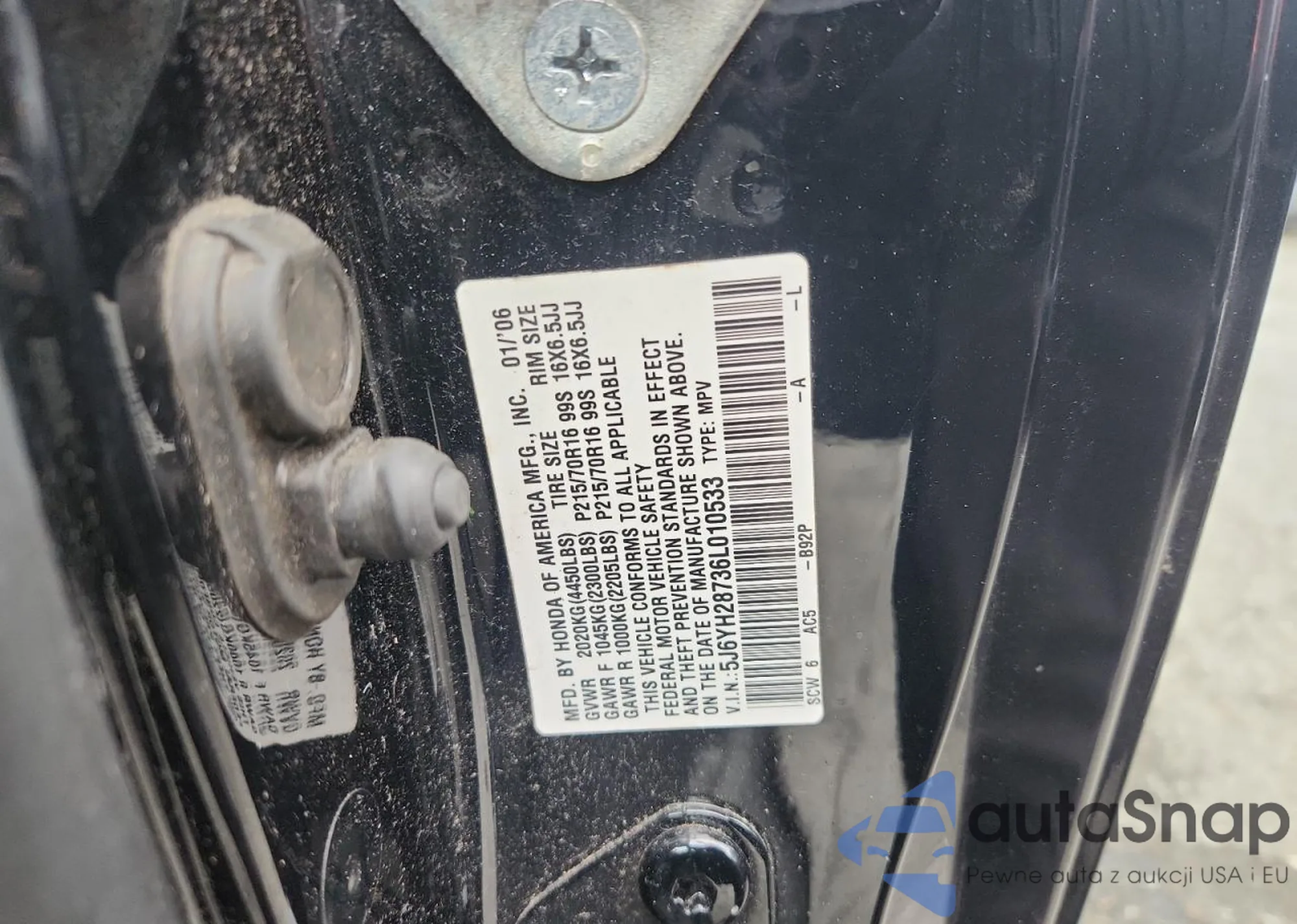 LOT: 90304605 VIN: 5J6YH28736L010533