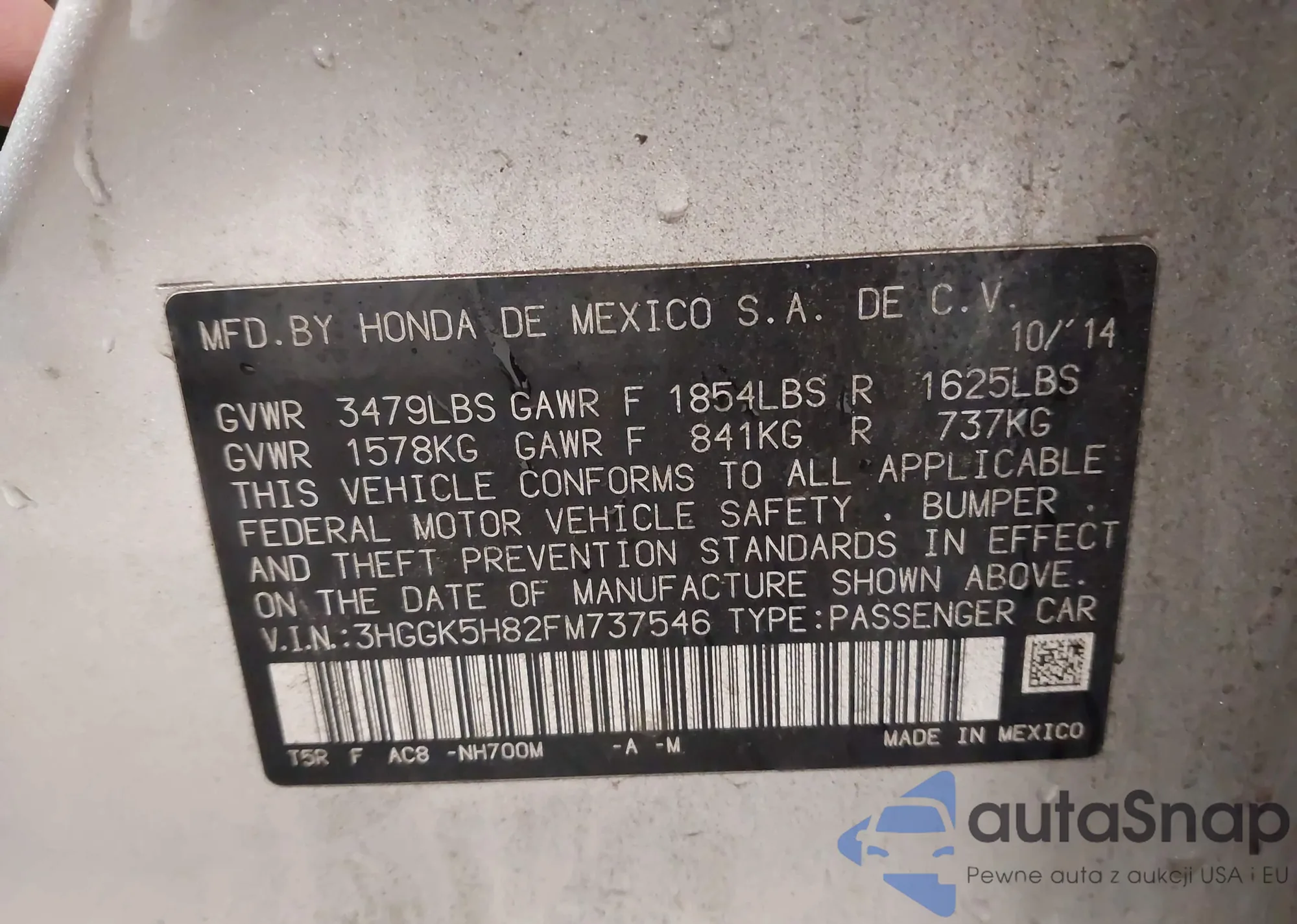 • VIN 3HGGK5H83FM703244