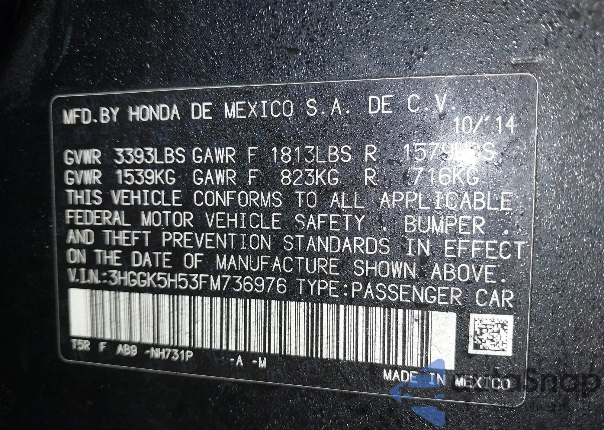 • VIN 3HGGK5H53FM736976
