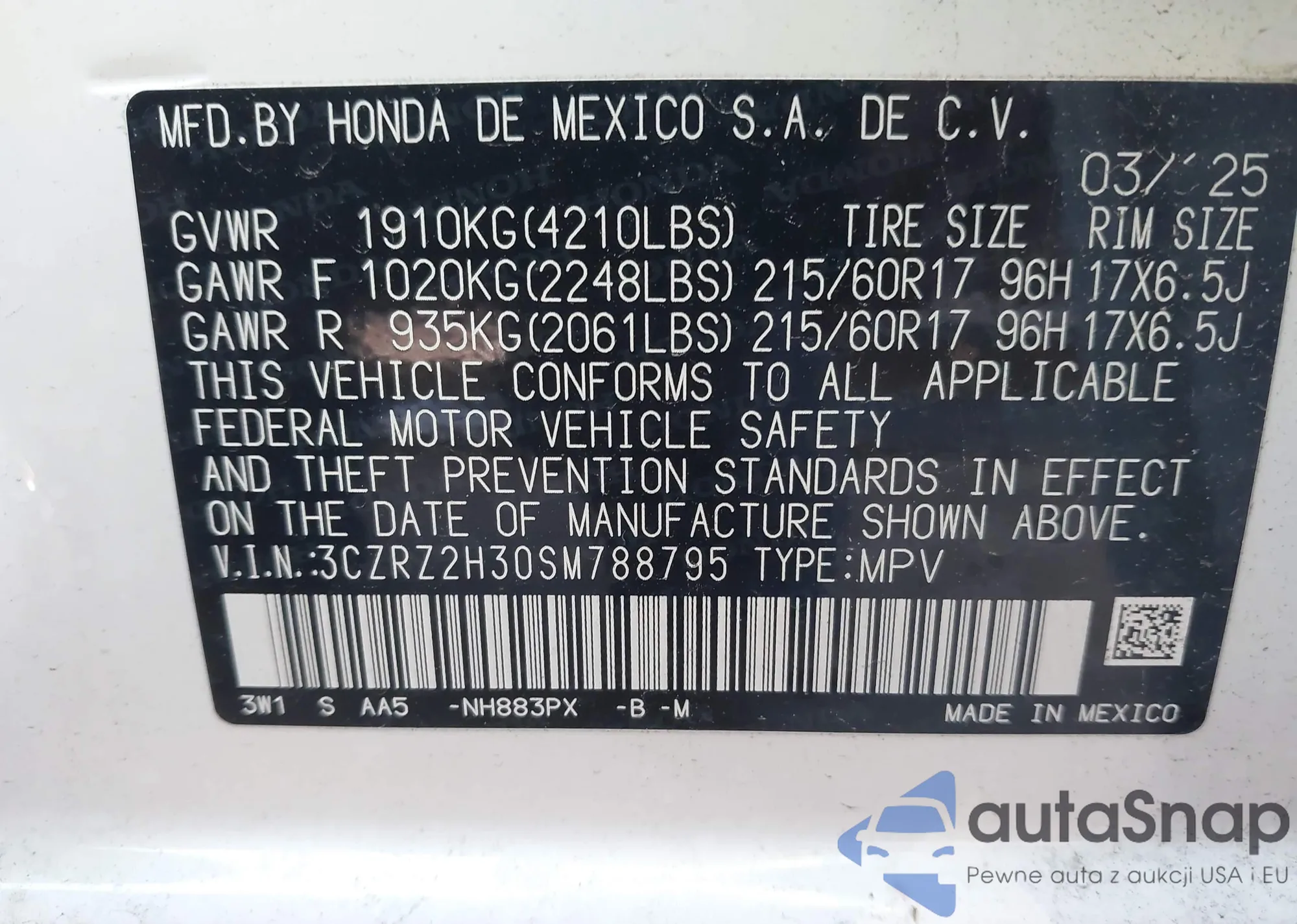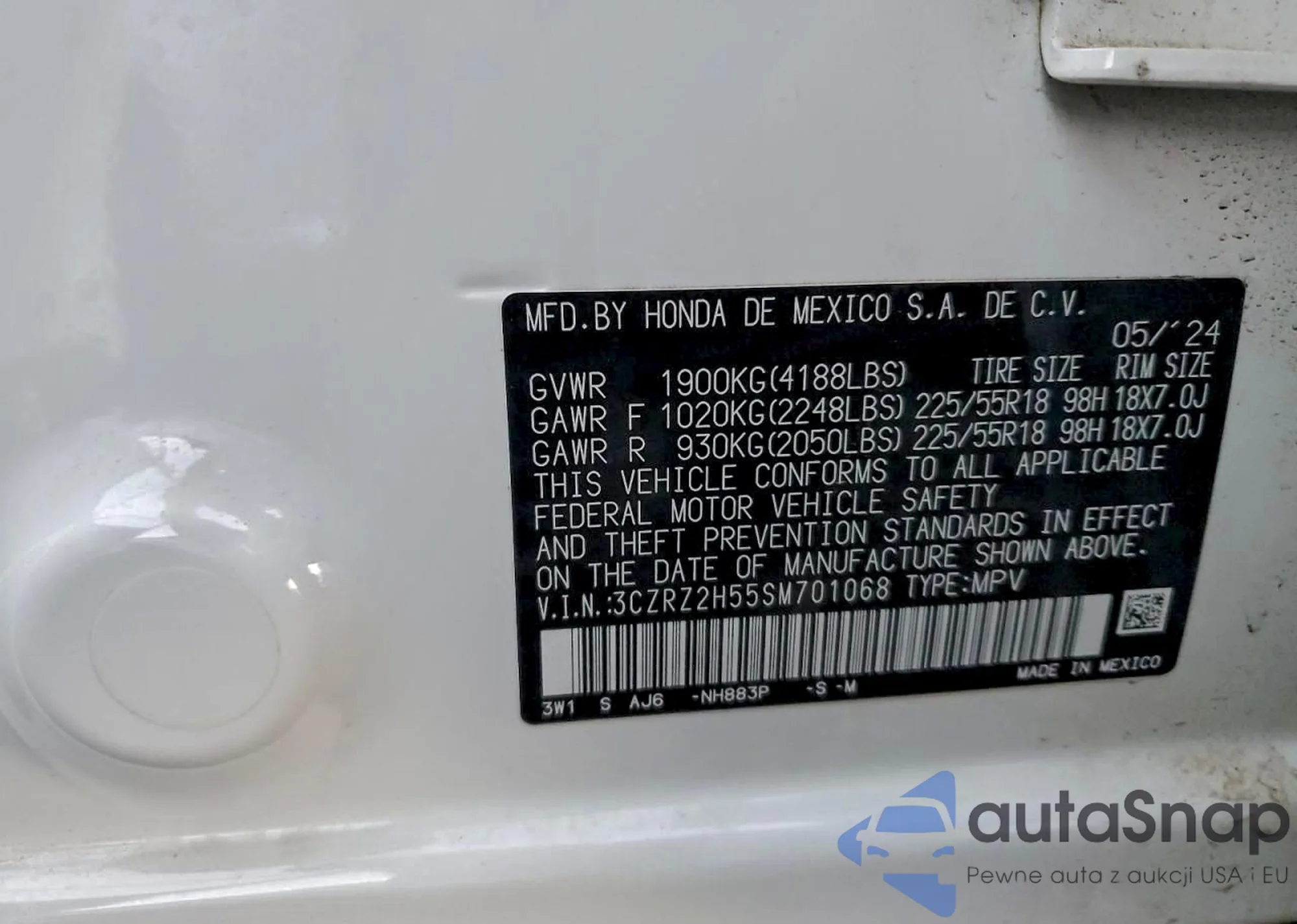• VIN 3CZRZ2H55SM701068