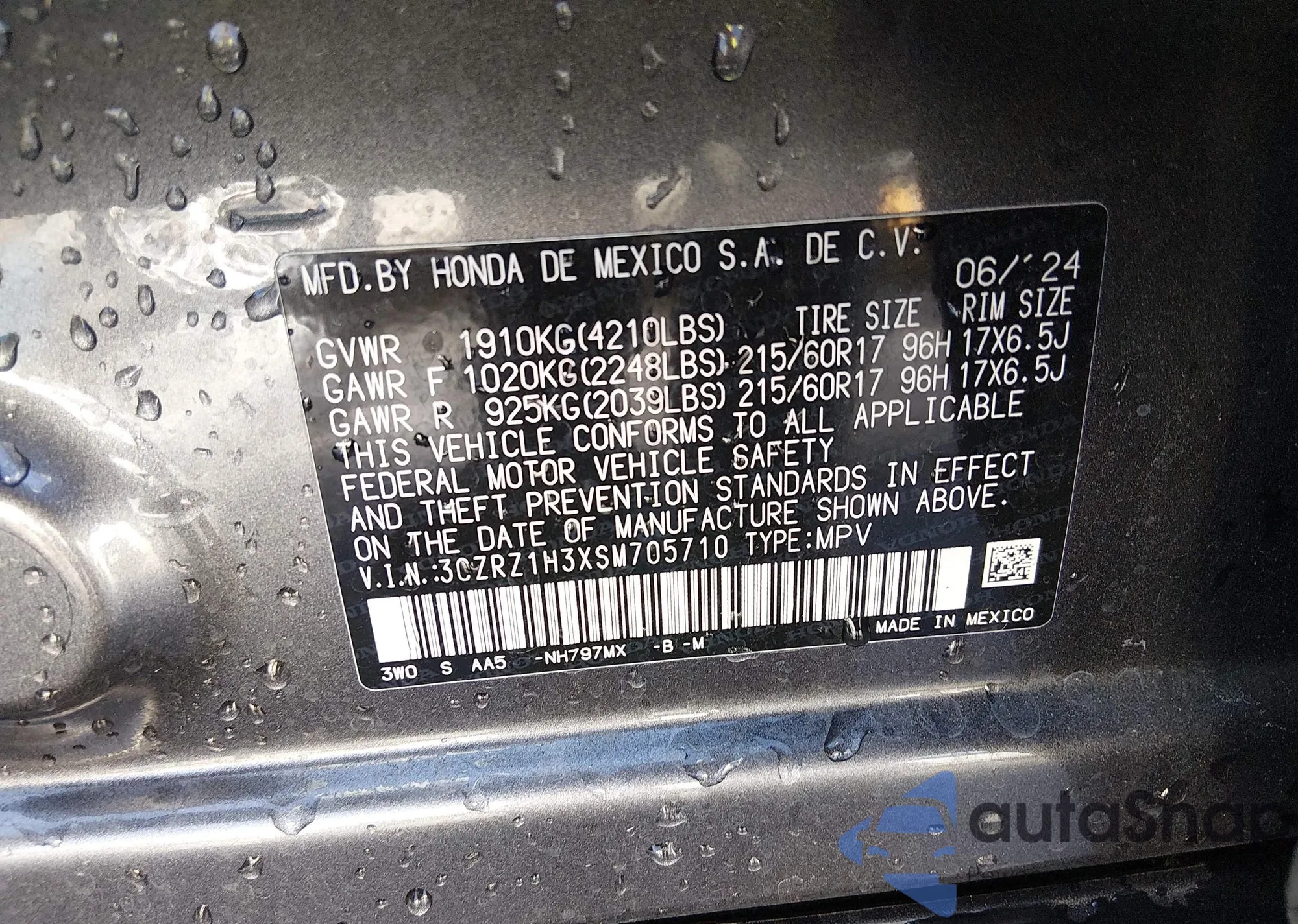 • VIN 3CZRZ1H3XSM705710