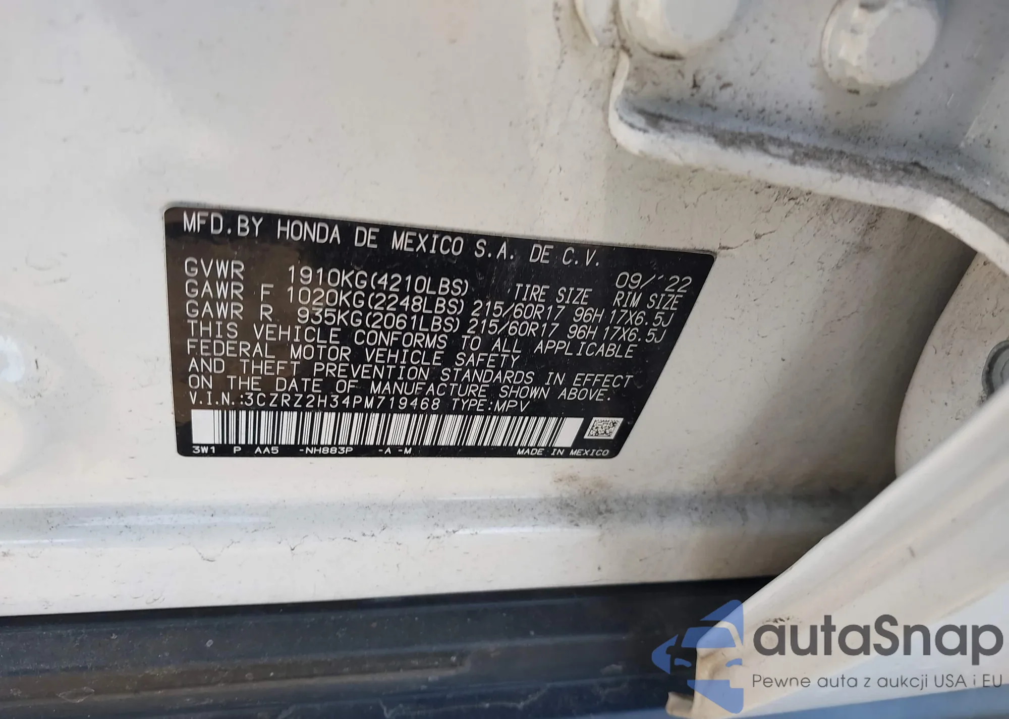 • VIN 3CZRZ2H34PM719468
