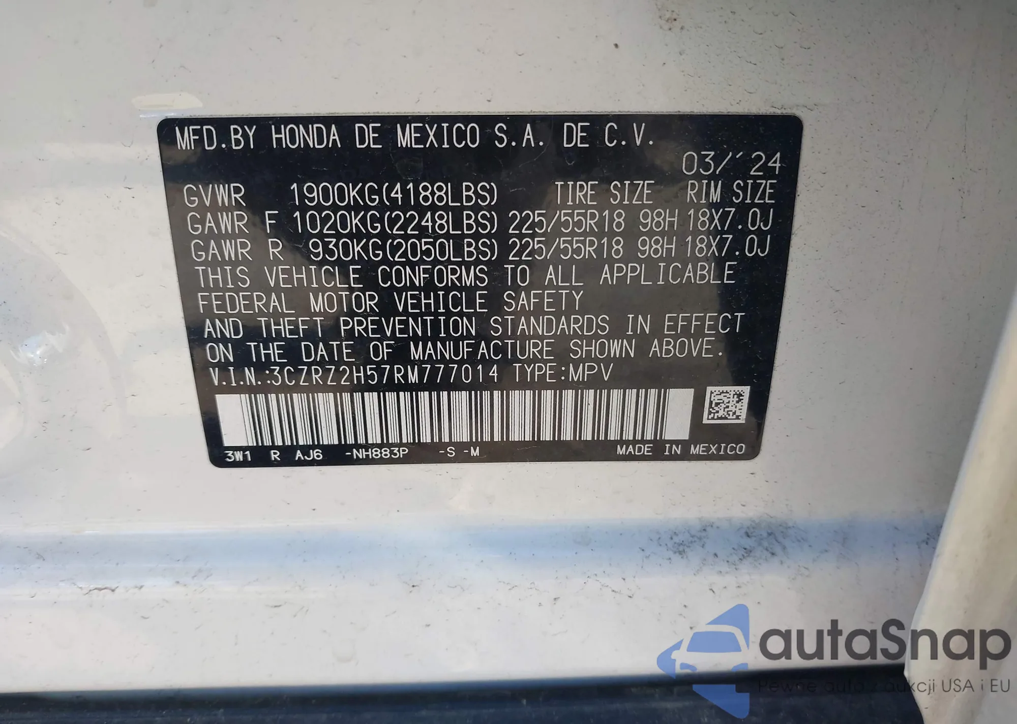 • VIN 3CZRZ2H75SM751003