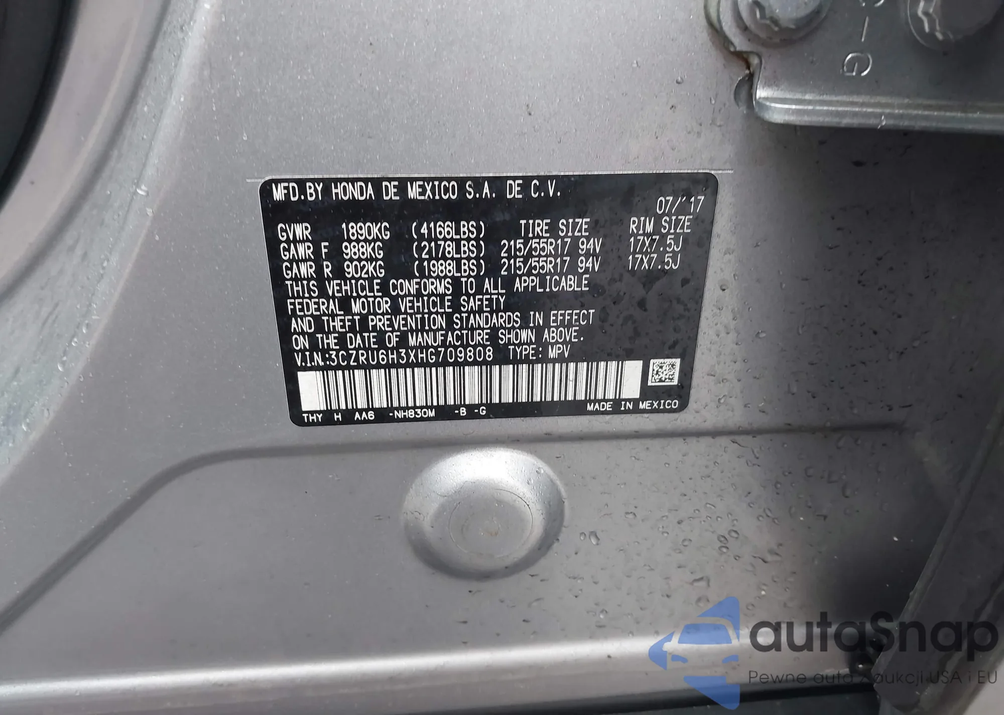 • VIN 3CZRU6H37HG703626
