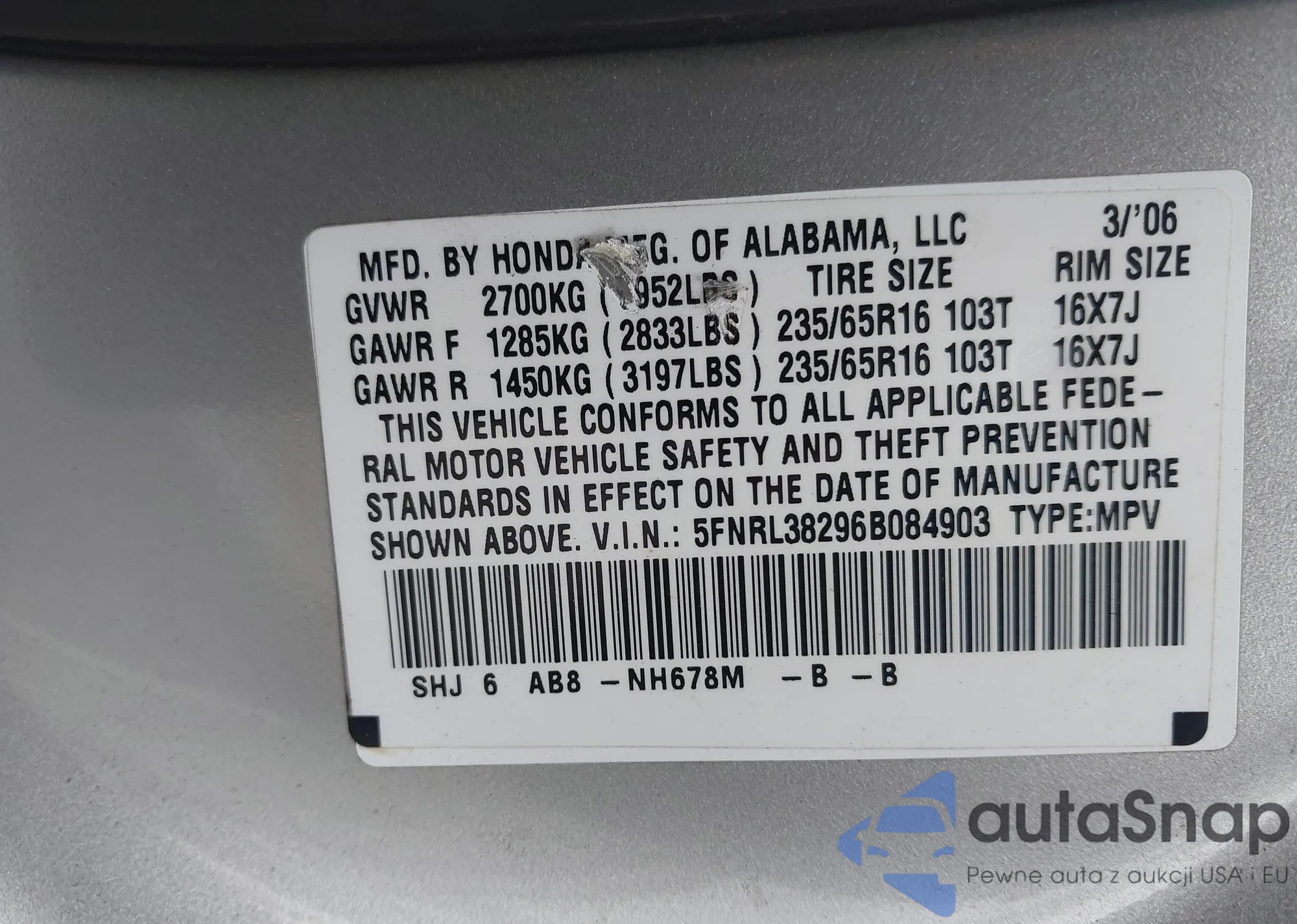 Kup Honda Odyssey III z USA