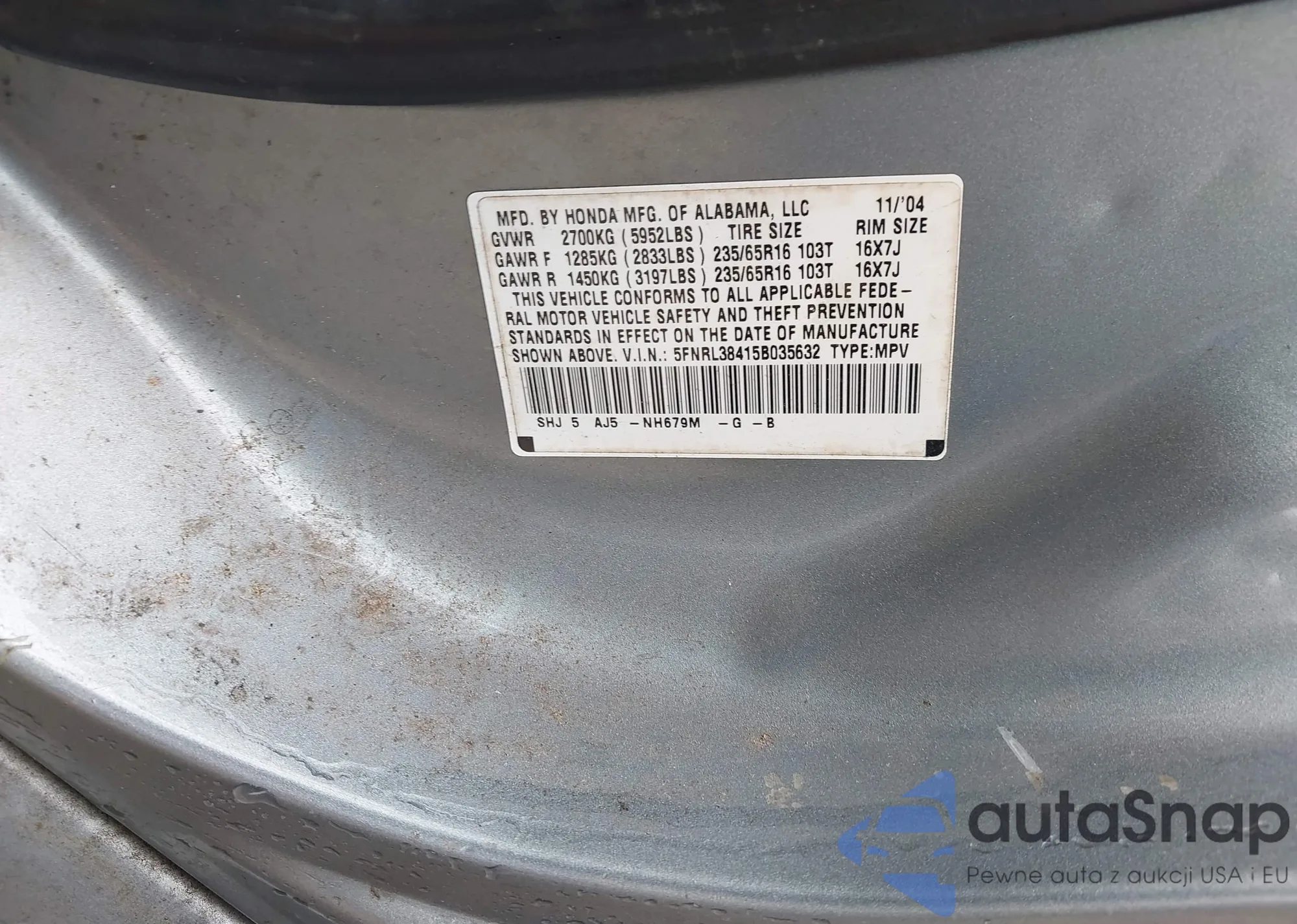 • VIN 5FNRL38415B035632