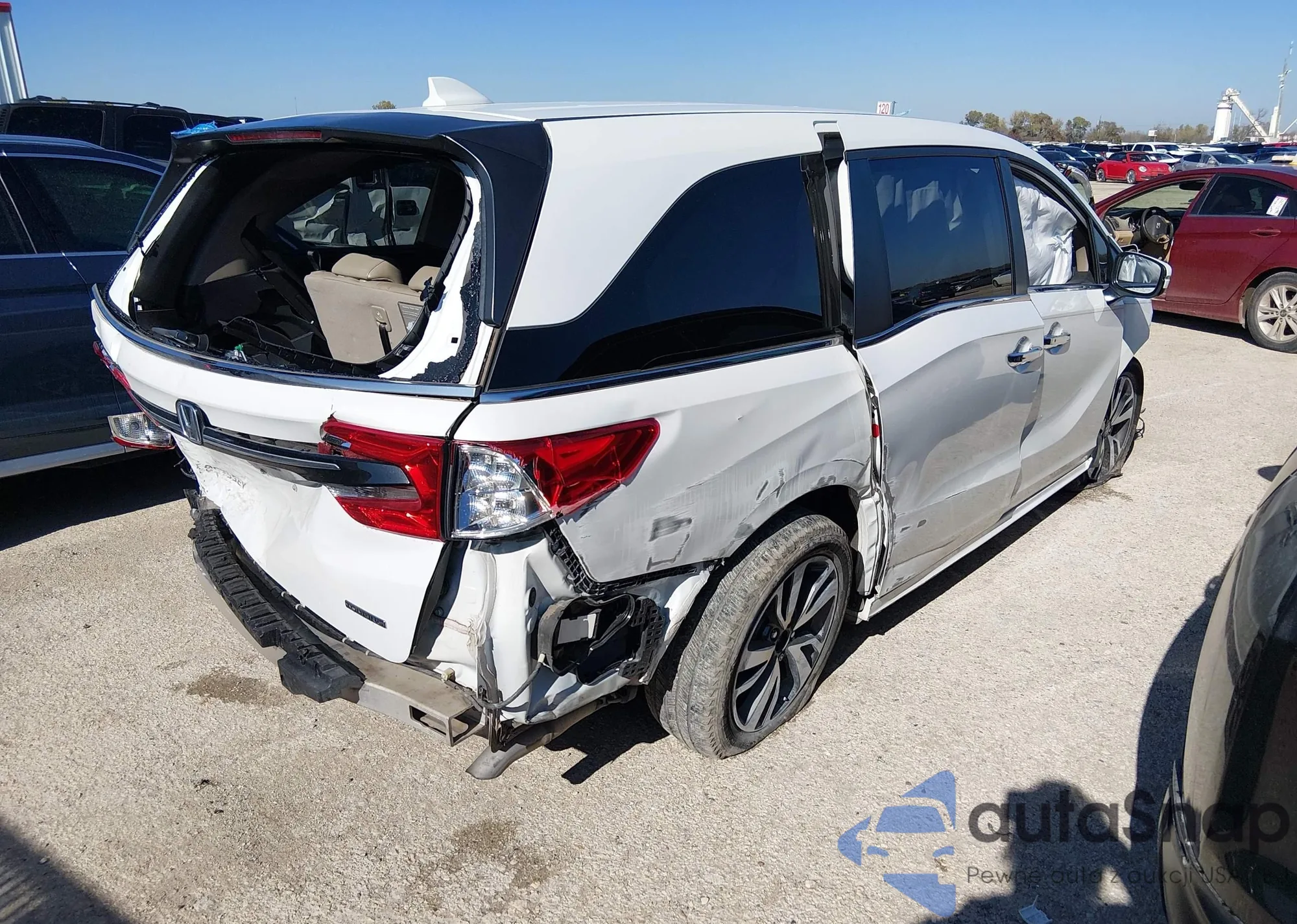 2021 Honda Odyssey Touring z USA, uszkodzony, nr VIN 5FNRL6H87MB034875