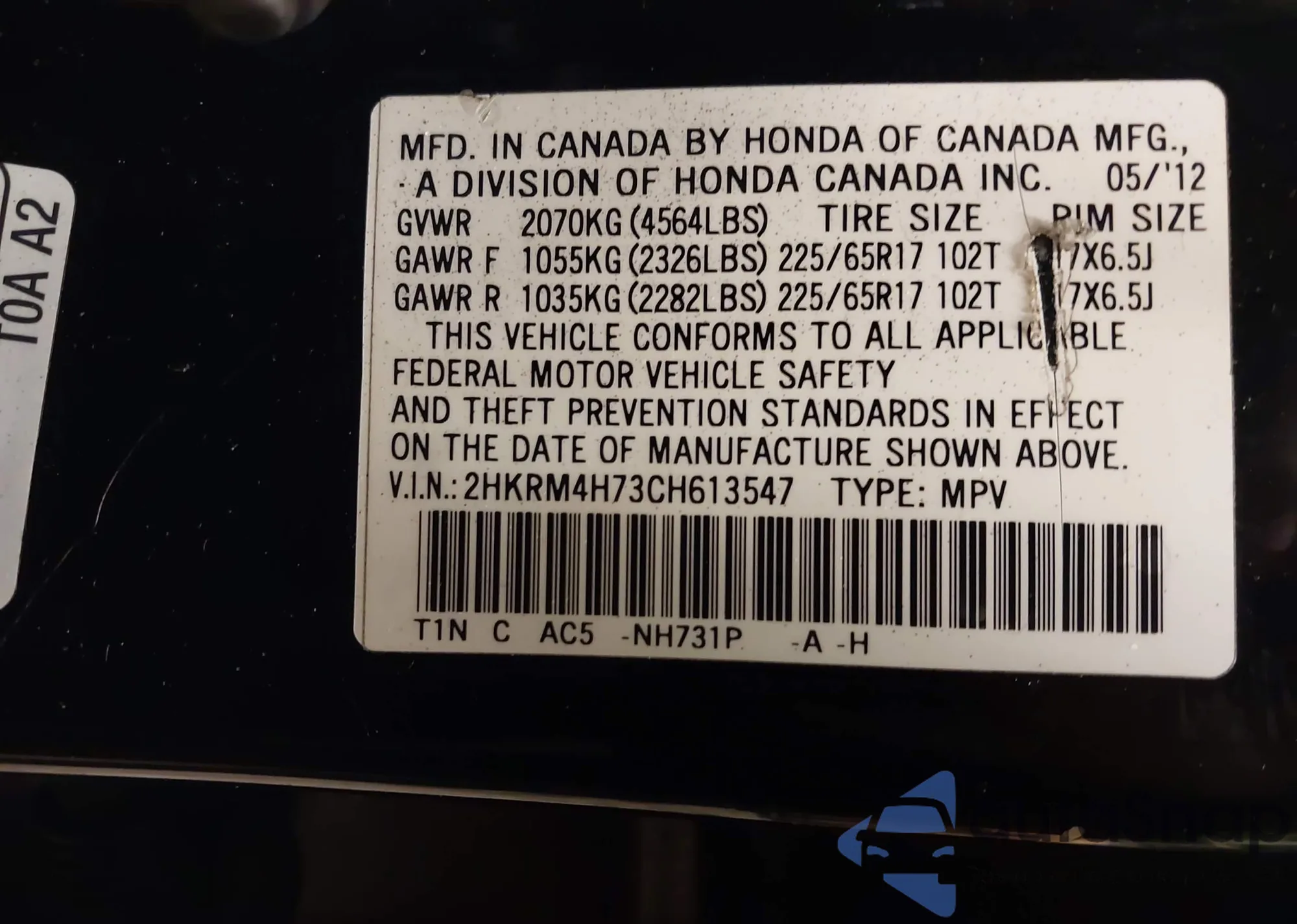 • VIN 2HKRM4H73CH613547