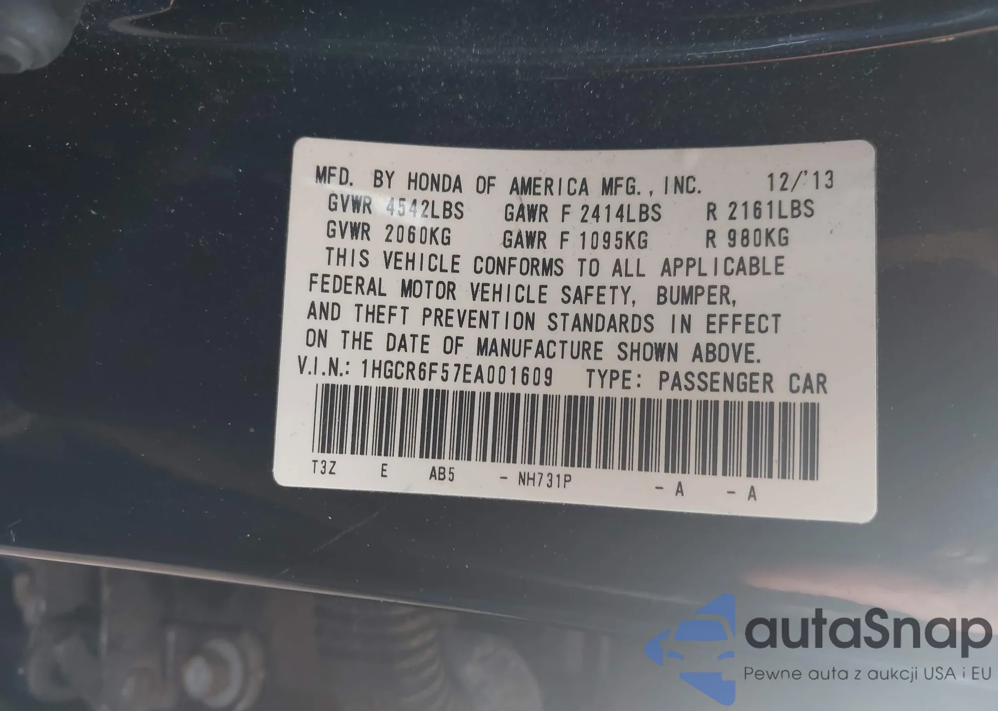 • VIN 1HGCR6F57EA001609