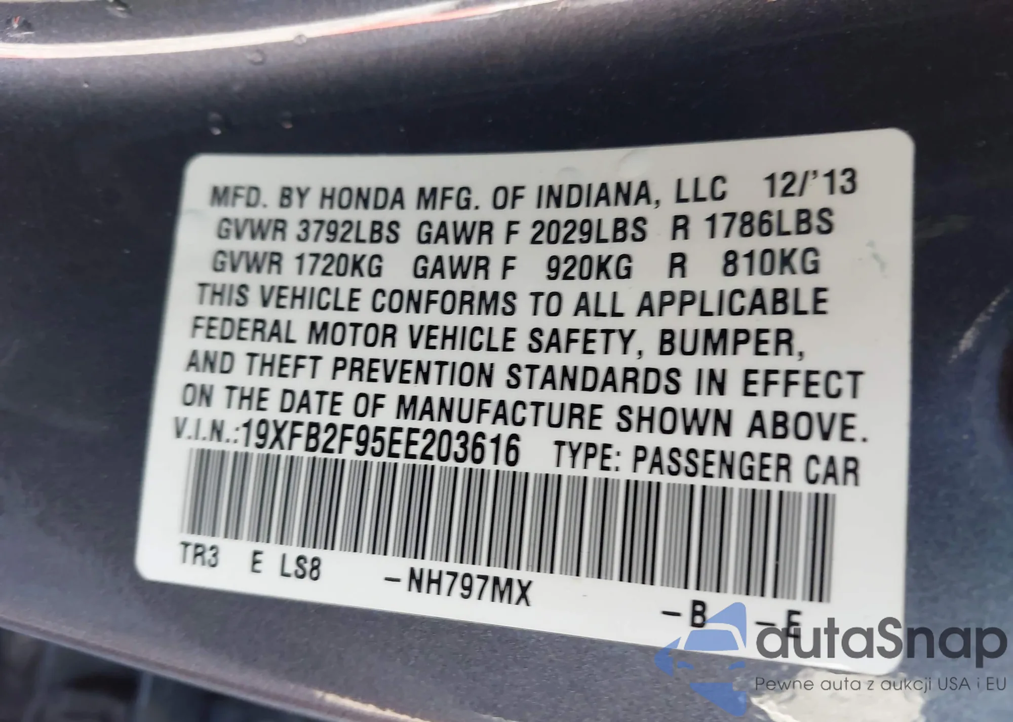 • VIN 19XFB2F95EE203616