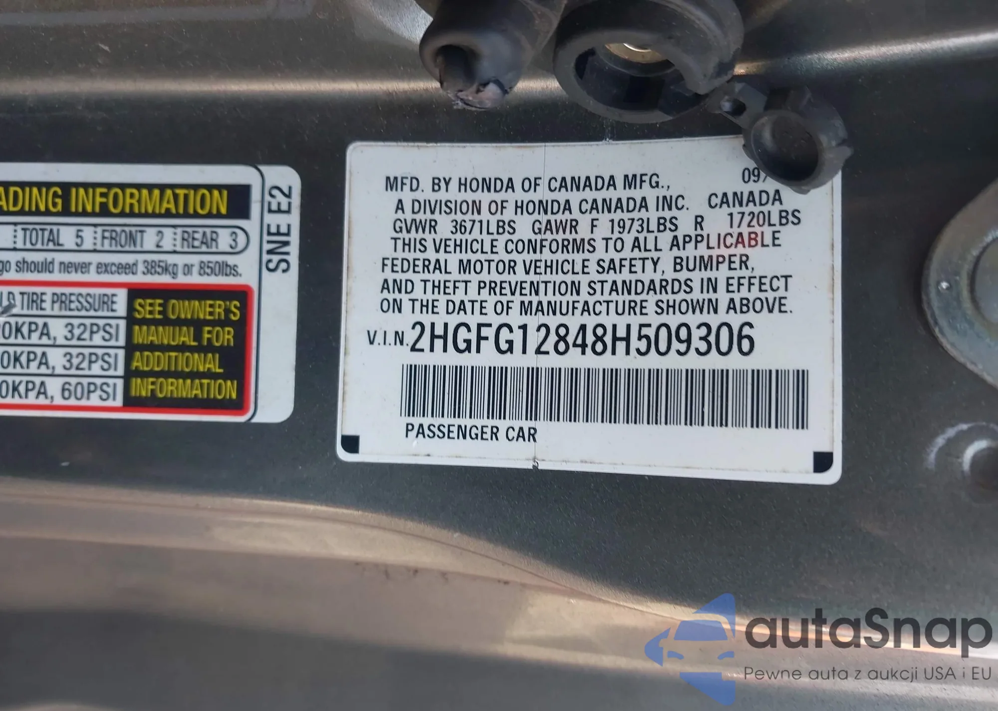 • VIN 2HGFG12848H509306