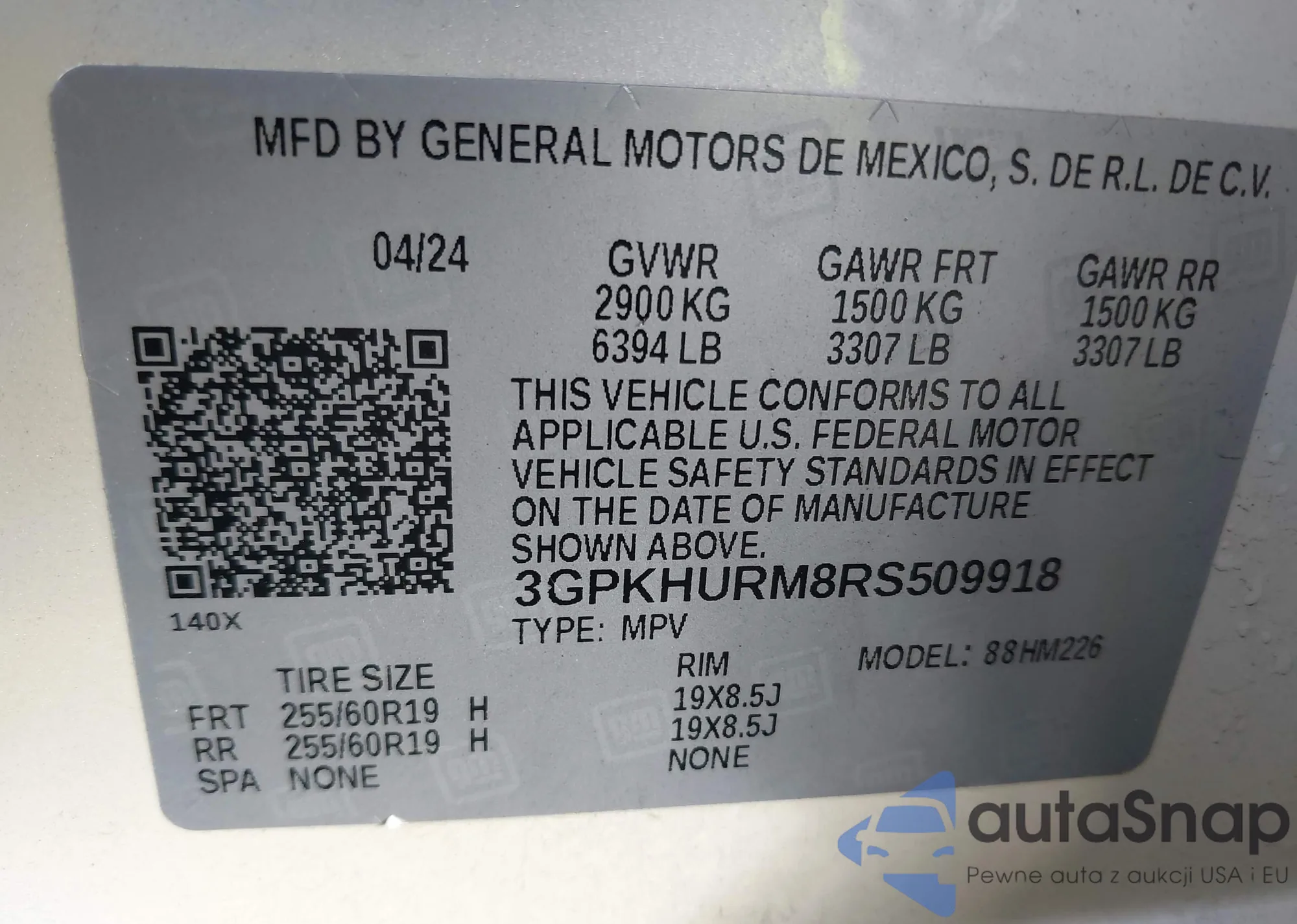 LOT: 43751816 VIN: 3GPKHURM8RS509918